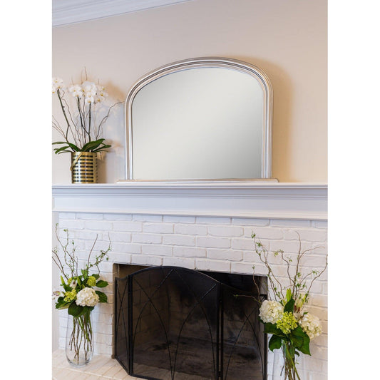 Classic, simple and elegant, this solid wood frame arched mirror is in a beautiful silver finish. The beveled wood moulding frame is on a base which sits beautifully atop any mantle, dresser, entry table, creating an elegant and reflective space.
