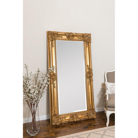 Large Leaner Mirror with Wood Frame Traditional Style by SBC Décor with Molding Hand Finished in Antique Gold, Antique Silver, Champagne Gold, or Matte White.