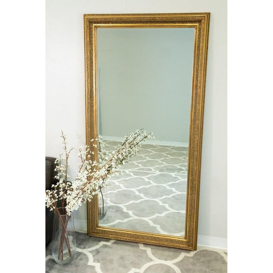 Large Wood Frame Mirror – Traditional Style | Full Length Dressing Mirror with Molding Detail | Beveled Glass | Antique Gold Hand Finish | Overall Dimensions 40" W x 78" H x 2" D – by SBC Décor