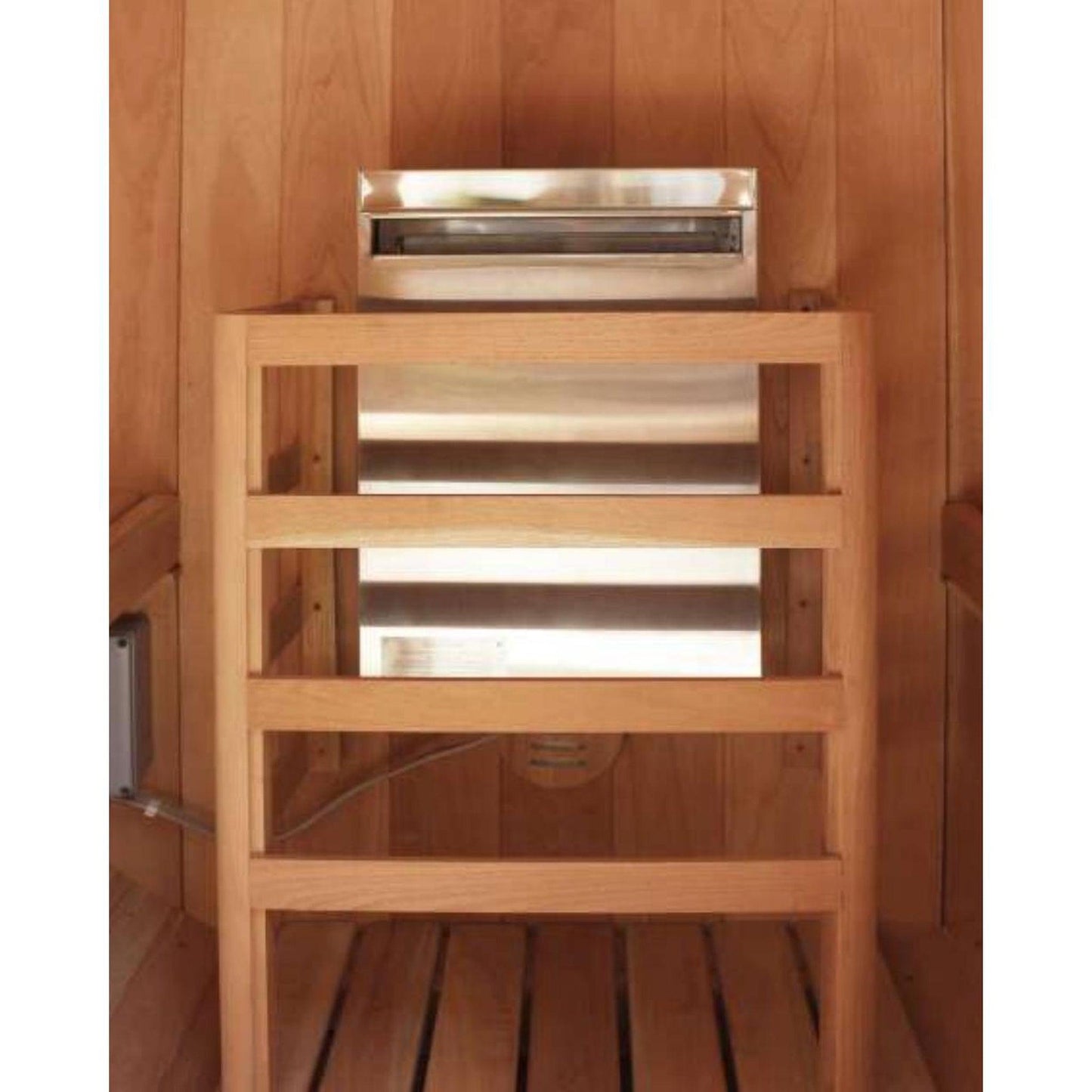 Scandia Manufacturing Ultra 3kW 208V 1PH Small Stainless Steel Wall-Mounted Electric Sauna Heater With 60-Minute Timer And Thermostat Sensor Wall Cover