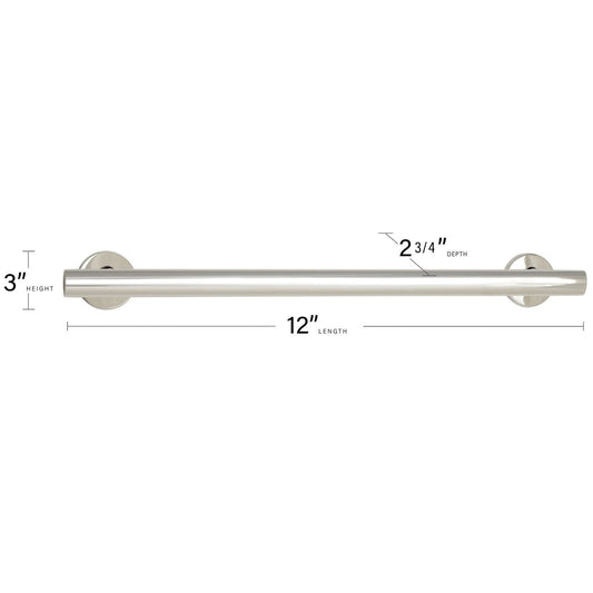 Seachrome Coronado 12" Polished Stainless Steel Wall Mount Bathroom Shower Grab Bar, 1.5" Diameter, ADA Compliant