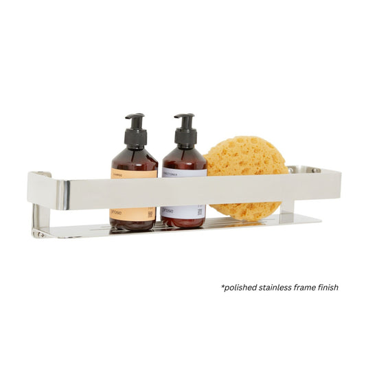 With #304 Stainless steel construction, this elegant shelf offers added durability and strength. Designed with a rectangular shape and standard drain slots, this shower shelf features a thick guard rail to keep items secure. Custom sizes and finishes are available to meet your design specifications.