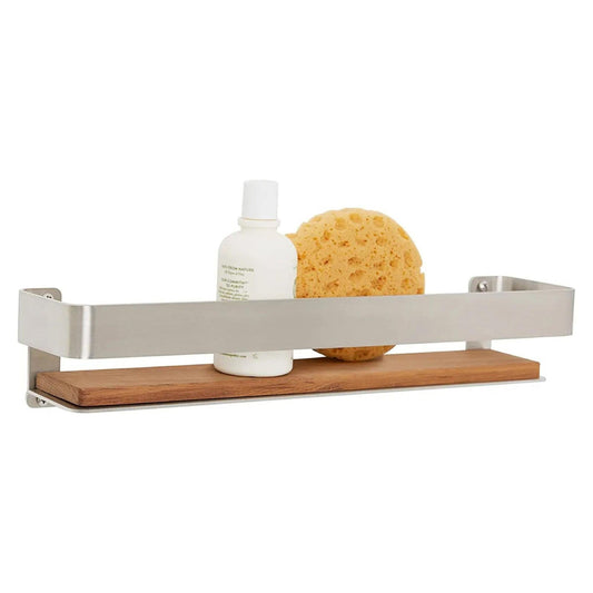 Crafted from #304 stainless steel and 100% heartwood grade pieces of the Finest First European Quality (FEQ) Burmese Teak, this rectangular floating shelf brings a unique modern feel to any shower or wall. The shelf includes a teak wood insert that offers a rustic style and a natural rich look to any bath. It features a thick guard rail to keep items securely in place. Custom sizes and finishes are available to meet your design specifications.