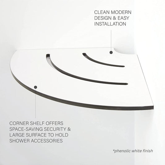 This stylish shelf can be used with the Contour Shower Seat for a streamlined, contemporary look in the bathroom. It provides space-saving storage in a shower or tub. Made from durable, water-resistant one-piece solid phenolic material, its sophisticated cutout pattern encourages drainage. Shelf Base is crafted from 1/2″ one-piece phenolic material with an 18″ radius and is available in multiple colors.