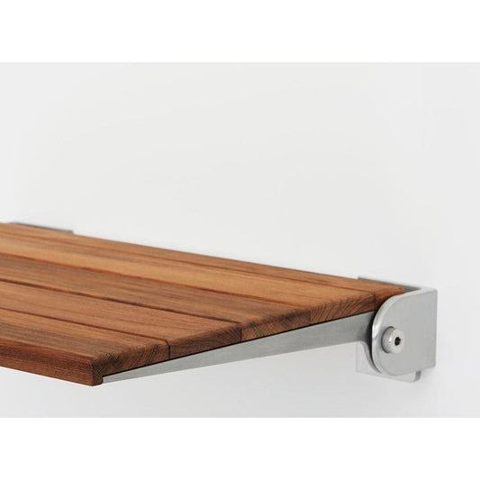 Seachrome Lifestyle and Wellness Silhouette SlimLine 20" Natural Teak Wood 3" Slats Seat Top and Silver Frame Wall Mounted Shower Bench Seat