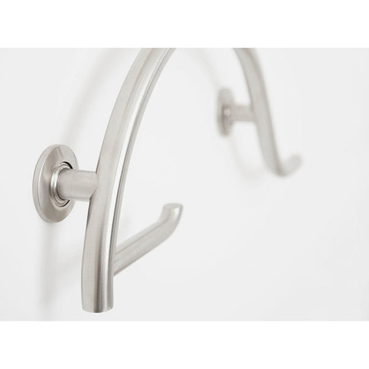 An integrated grab bar and toilet paper holder combine the strength of #304 stainless steel with a contemporary, undulating wave-curve design providing optimal support with an elegant lasting style. This grab bar offers secure weight-bearing support that meets and exceeds the minimum 250 lbs. requirement when properly installed. It is available in left-handed or right-handed configurations and features concealed mounting snap-on flange covers to enable easy installation. Custom sizes and finishes are available to meet your design specifications.