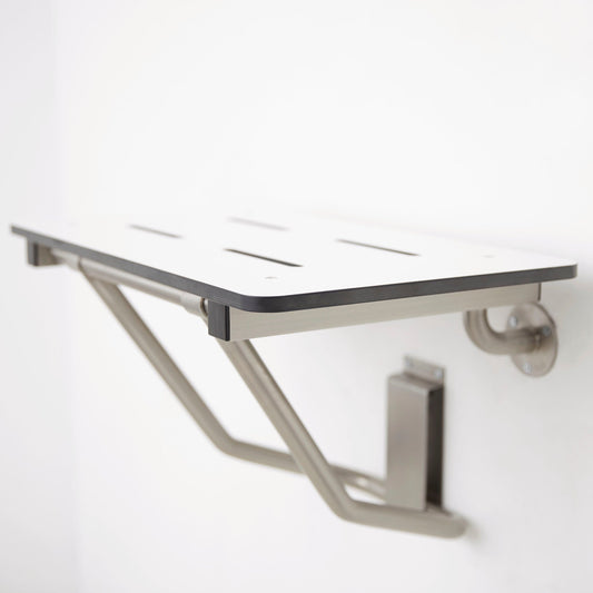 - Space-saving security in the shower. This convenient, yoke-style bench seat provides secure support in the shower, and easily folds against the wall when not in use.