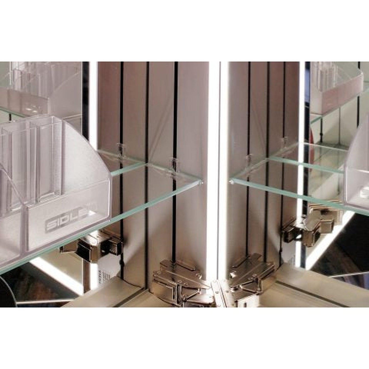 The lighting is complimented with the standard mirrored back wall interior for that finished ‘SIDLER” touch. Other features include an anodized aluminum body, BLUM® soft-close hinges and desilvering/deterioration resistant, SilverLasting™ double-sided mirror doors.
