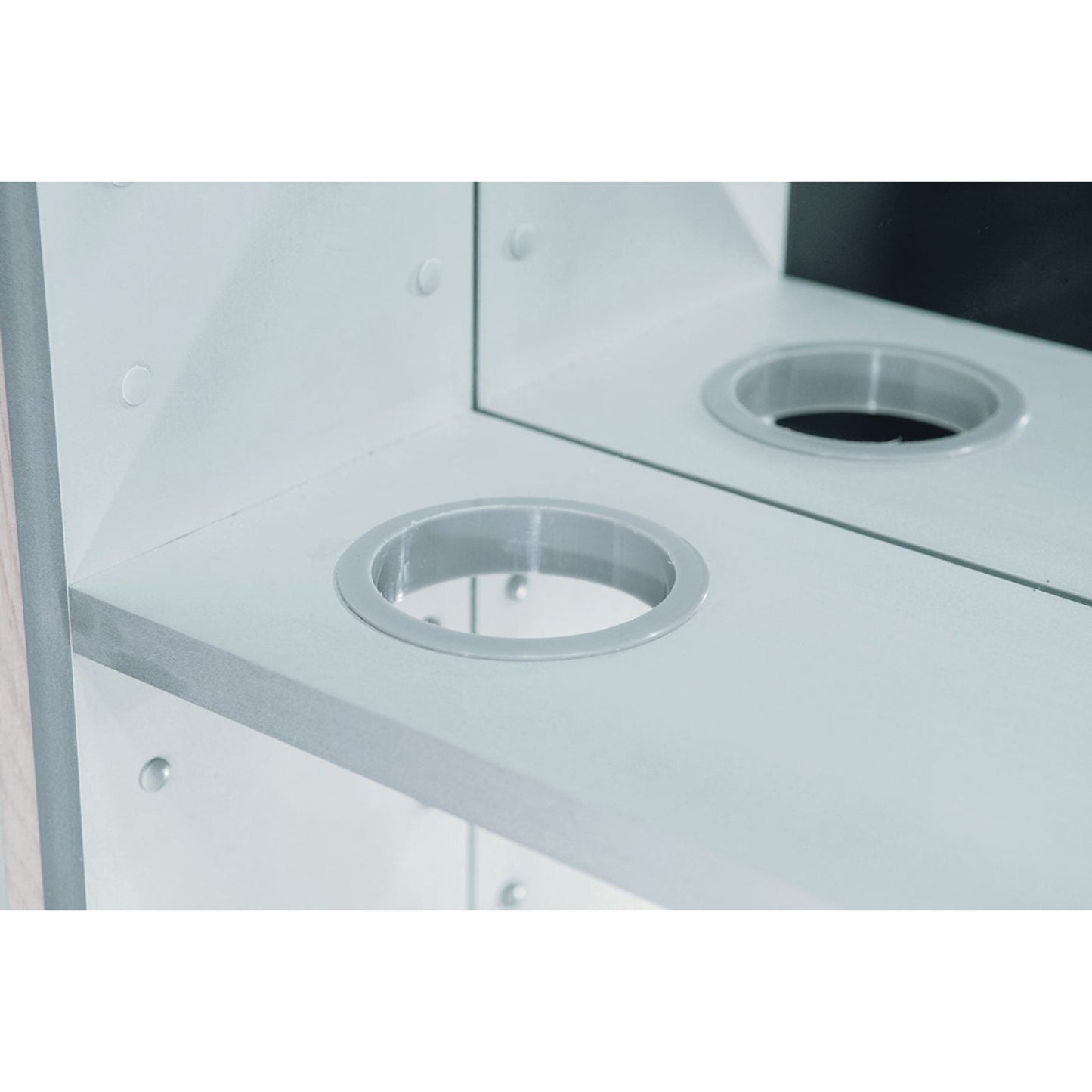 - Styling shelve including hairdryer holder and accessory hooks