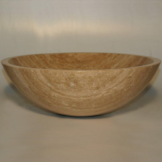 This lavatory basin has been crafted from a single piece of natural travertine stone with its unique characters and veining. This honed finish vessel is a refined beauty. Add a high-quality look to your master bath or guest bathroom with this handsome sink lavatory basin. Ideal for use with halfway drop-in or sit-on-countertop units, this modern sink basin is elegant with a beige brown hue that is luxurious yet neutral enough to complement any color scheme.