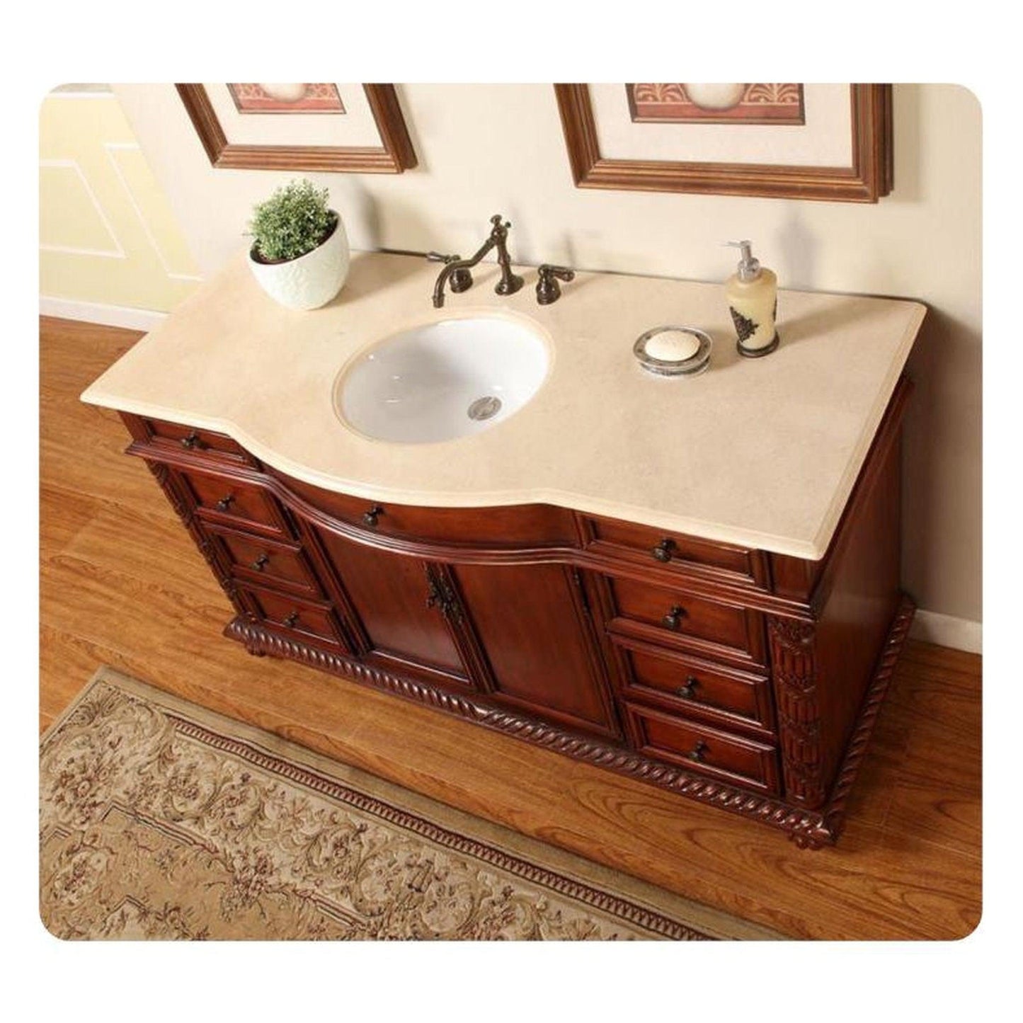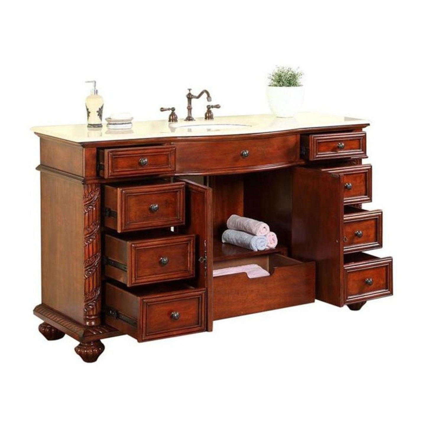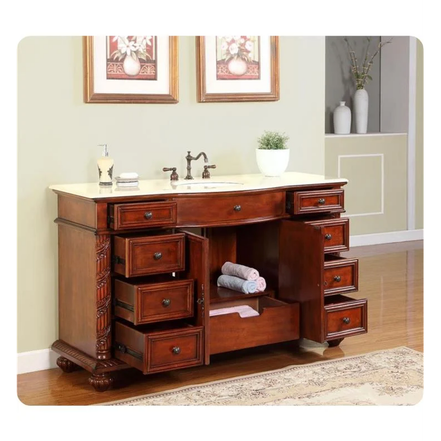 Silkroad Exclusive 60" Single Sink Red Chestnut Bathroom Vanity With Crema Marfil Marble Countertop and White Ceramic Undermount Sink