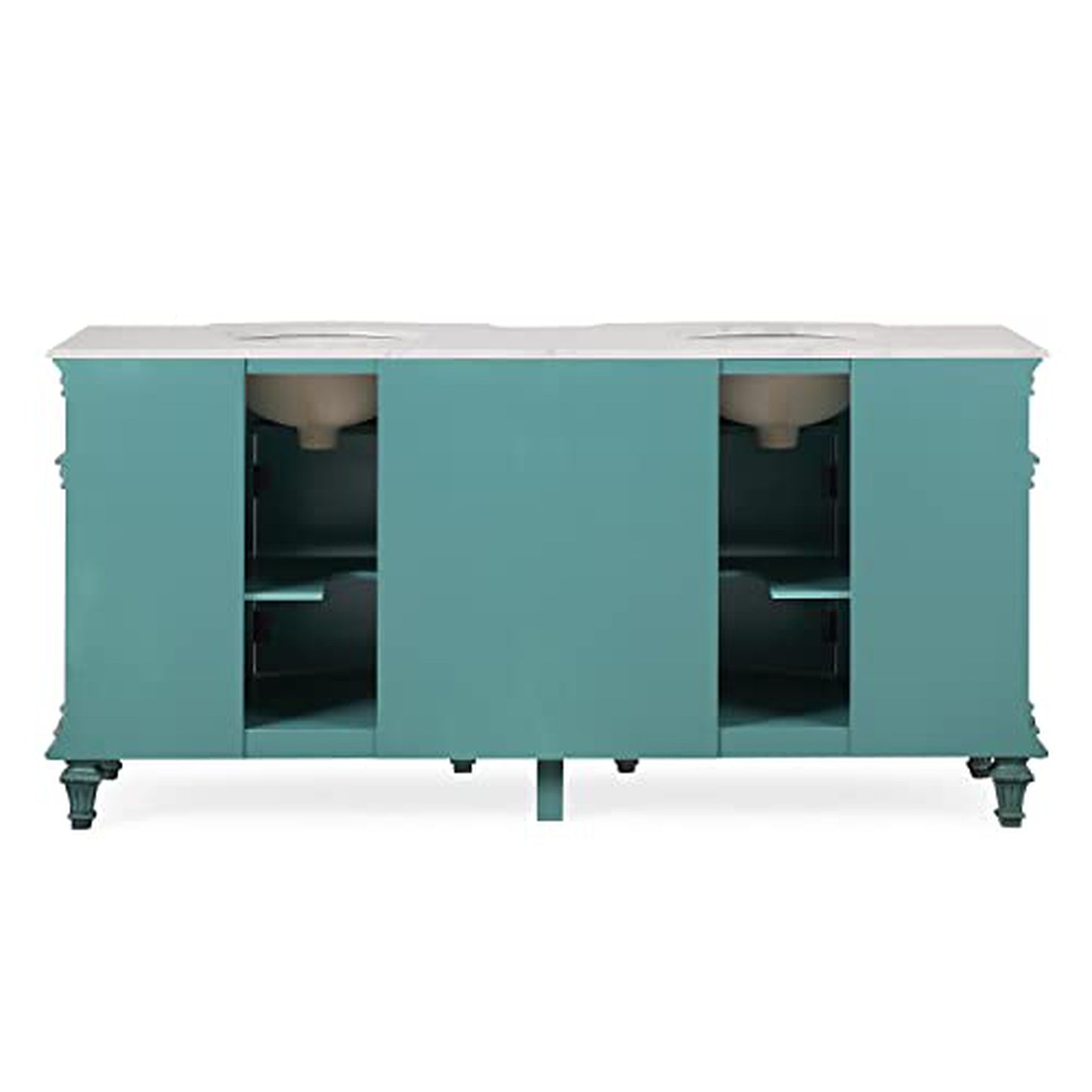 Silkroad Exclusive 72" Double Sink Retro Green Bathroom Vanity With Carrara White Marble Countertop and White Ceramic Undermount Sink