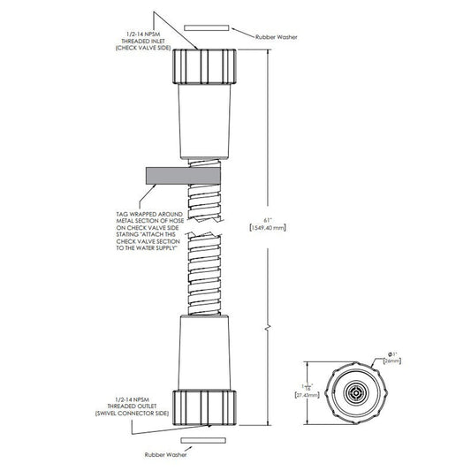 - Inlet/Outlet: 1/2"-14 NPSM Threaded Swivel Connector