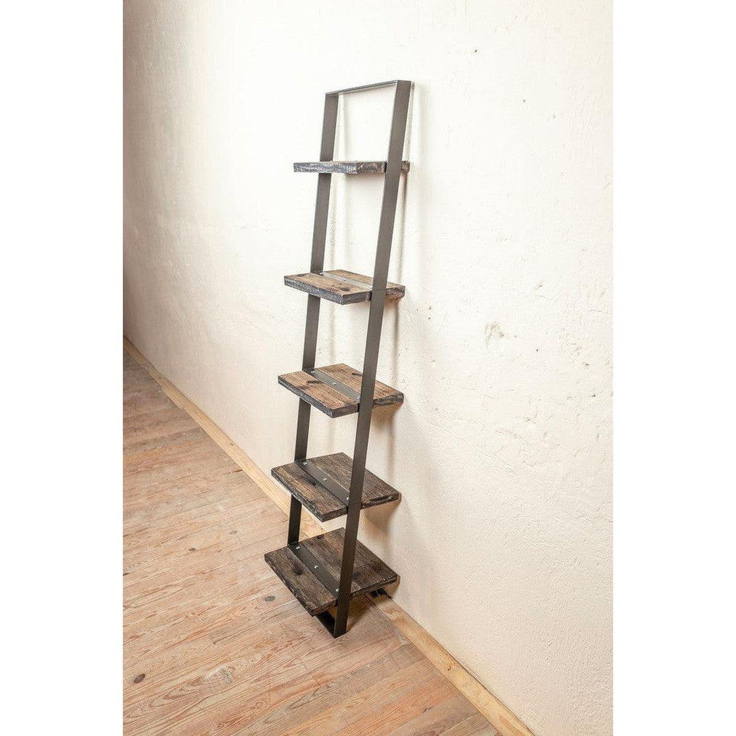 The Urban Forge wall ladder shelf is the perfect functional focal piece for both rustic and contemporary environments. The clean lines of the hand-forged frame beautifully contrast the character-filled, distressed boxcar wood shelves. The wood grain of this narrow ladder bookshelf is adorned with the scuffs and scratches to mimic old boards showing hard work over decades of time. The Urban Forge Ladder Wall Shelf is a modular piece that can be paired with the narrow shelf or the desks to create a stunning wall of storage and function. Wall attachment bracket kit included to secure the shelf to the wall. Rubber feet protect your floor.