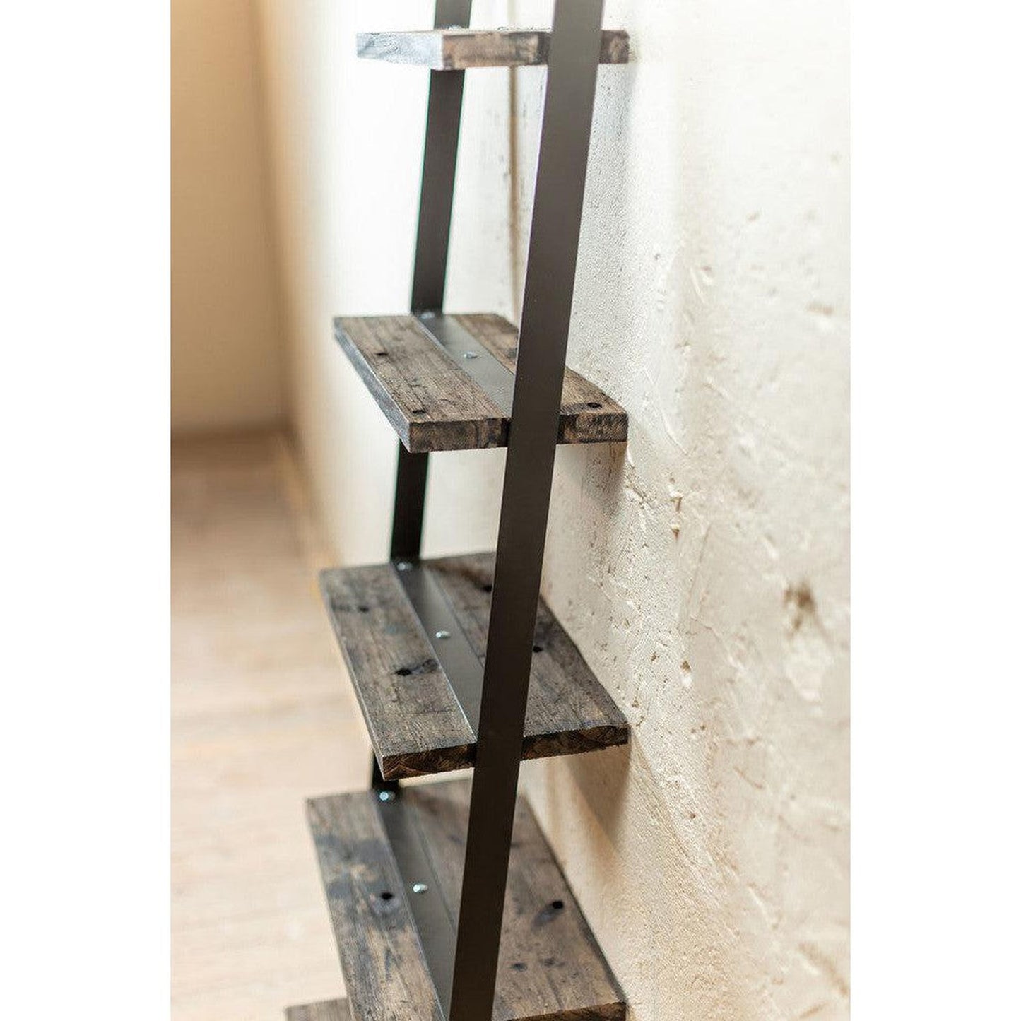 The Urban Forge wrought iron ladder shelf is the perfect functional focal piece for both rustic and contemporary environments. The clean lines of the hand-forged frame beautifully contrast the character-filled boxcar wood shelves. The wood grain is adorned with the scuffs, scratches, and holes to mimic antique boards that are distressed over decades of time. The Urban Forge Ladder Wall Shelf is a modular piece that can be paired with the narrow shelf or the desks to create a stunning wall of storage and function. Wall attachment bracket kit included to secure the shelf to the wall. Rubber feet protect your floor.