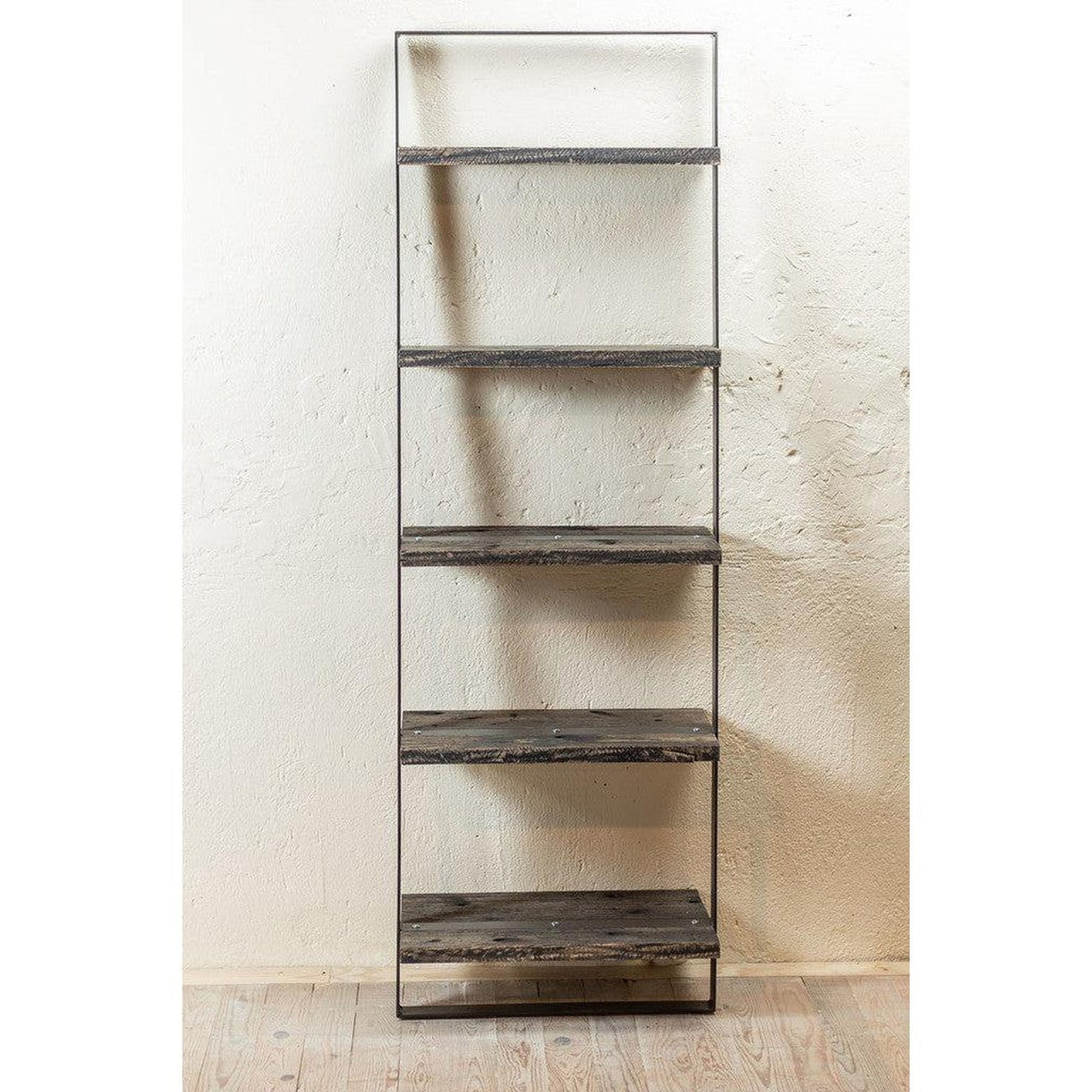 The Urban Forge wrought iron ladder shelf is the perfect functional focal piece for both rustic and contemporary environments. The clean lines of the hand-forged frame beautifully contrast the character-filled boxcar wood shelves. The wood grain is adorned with the scuffs, scratches, and holes to mimic antique boards that are distressed over decades of time. The Urban Forge Ladder Wall Shelf is a modular piece that can be paired with the narrow shelf or the desks to create a stunning wall of storage and function. Wall attachment bracket kit included to secure the shelf to the wall. Rubber feet protect your floor.