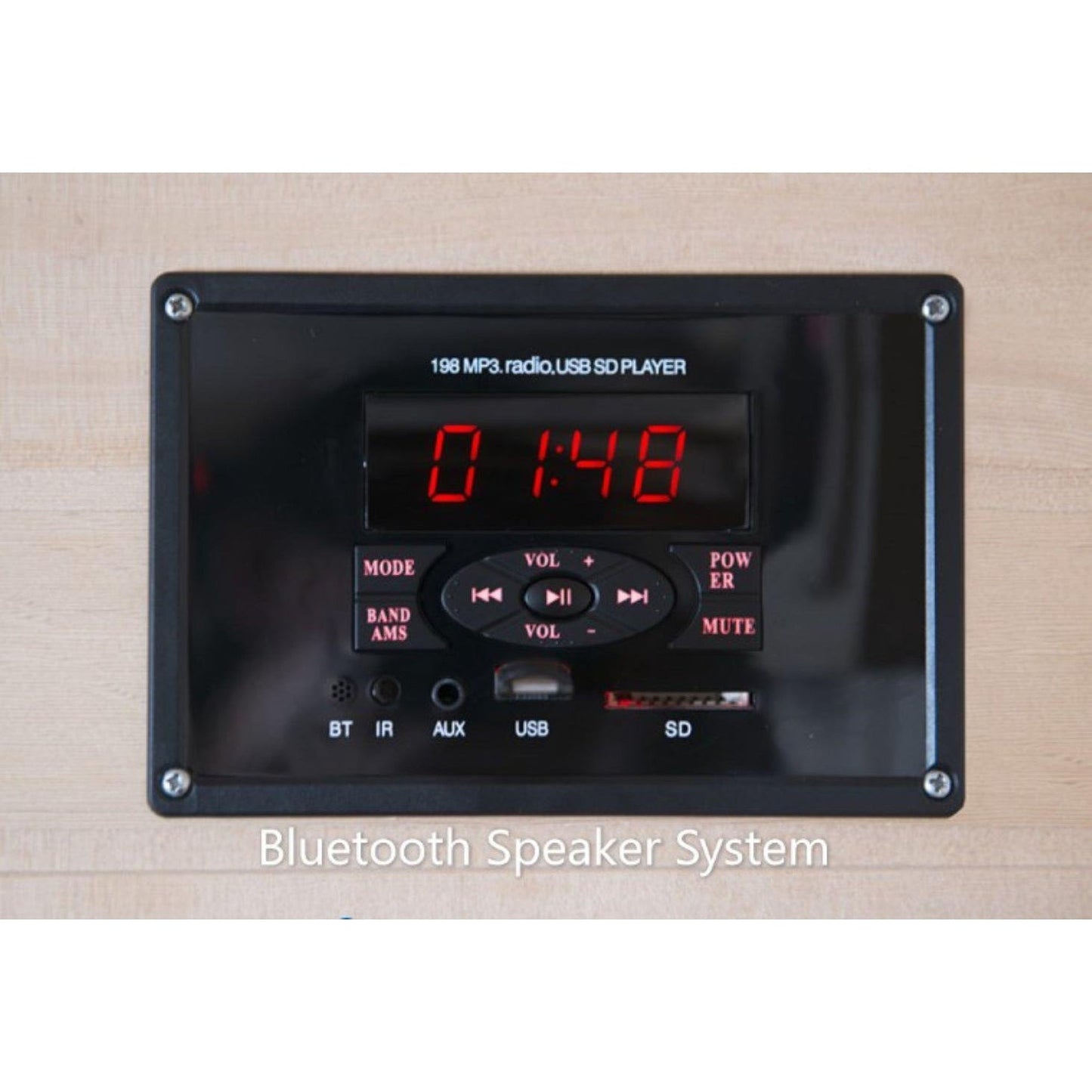 The Waverly 3-person outdoor traditional sauna features a shingled roof for outdoor use, front windows for extra lighting and a 4.5 kW electric Harvia heater with lava rocks that produces intense heat up to 170 degrees. The Waverly also has a Bluetooth speaker system, sand timer a, hygrometer to measure the humidity level and a cask and spoon for dripping water over the lava stones. A 55 inch rear bench seat provides ample room for 3.