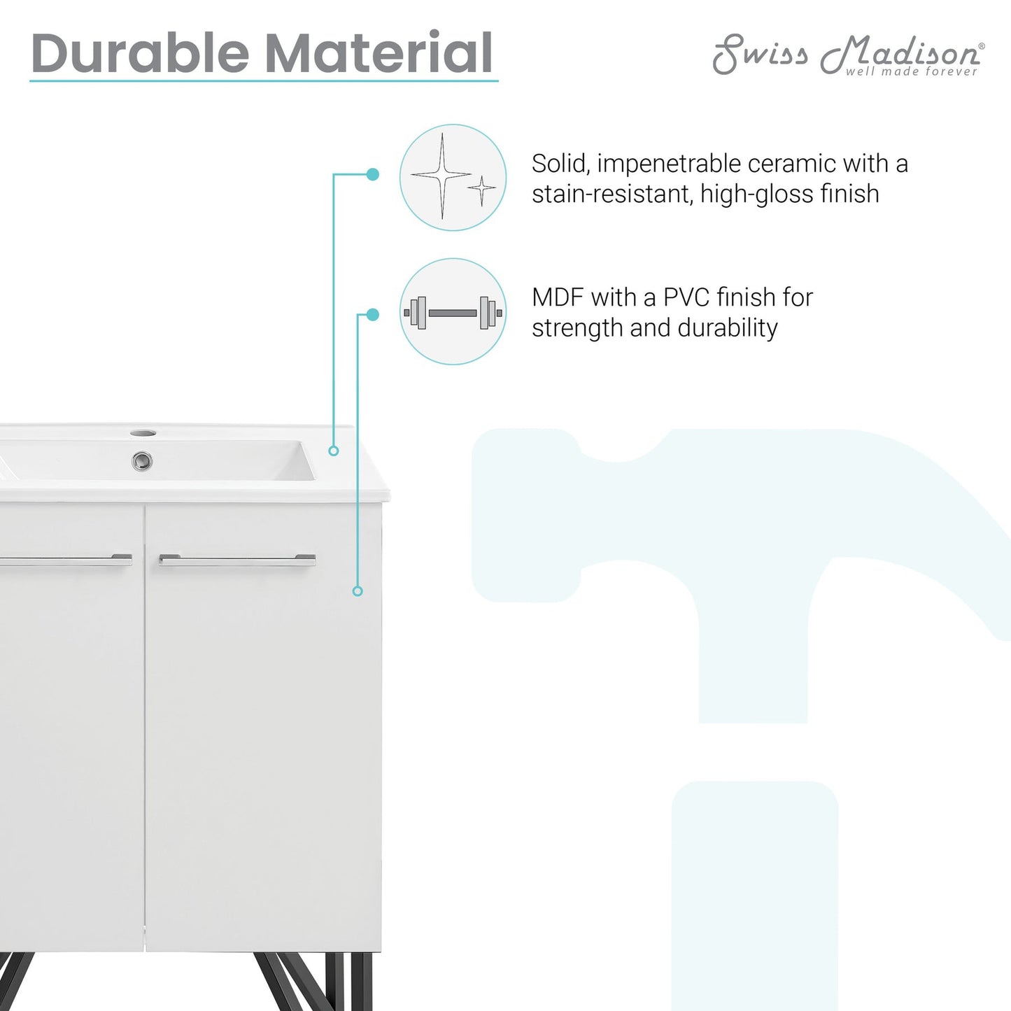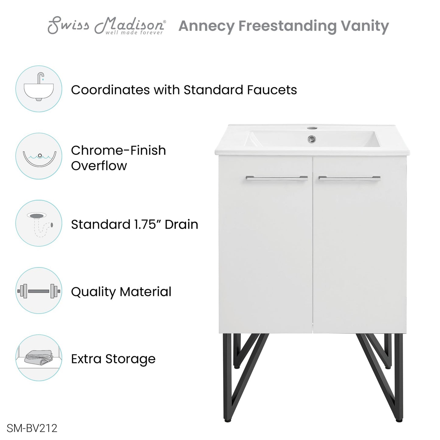 Swiss Madison® products are made with quality materials and excellent craftsmanship to provide our customers with beautiful, durable, long-lasting products. Should there be any defects in materials or craftsmanship under regular use that are discovered within the first year of installation, Swiss Madison® will provide replacement parts at no charge, or at its discretion, replace any product or part of the product that is deemed defective, under normal installation, use, service or maintenance. This warranty applies only to the original purchaser. Proof of purchase will be required in the instance of a claim.