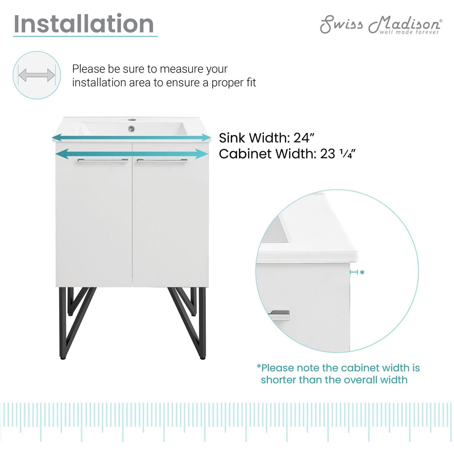 Swiss Madison® recommends all installations of Swiss Madison® products to be conducted by a licensed, professional plumber or contractor. Swiss Madison® will not be held responsible for any damage or product failure due to improper installation, misuse, or failure to utilize a licensed professional for installation. Swiss Madison® is not responsible for any installation or removal costs.