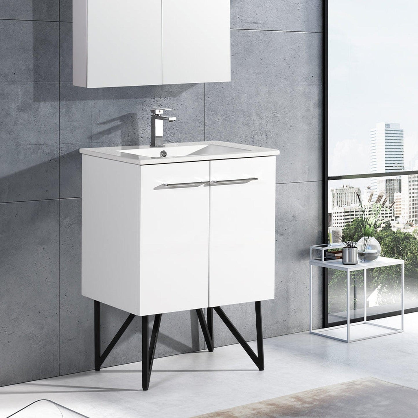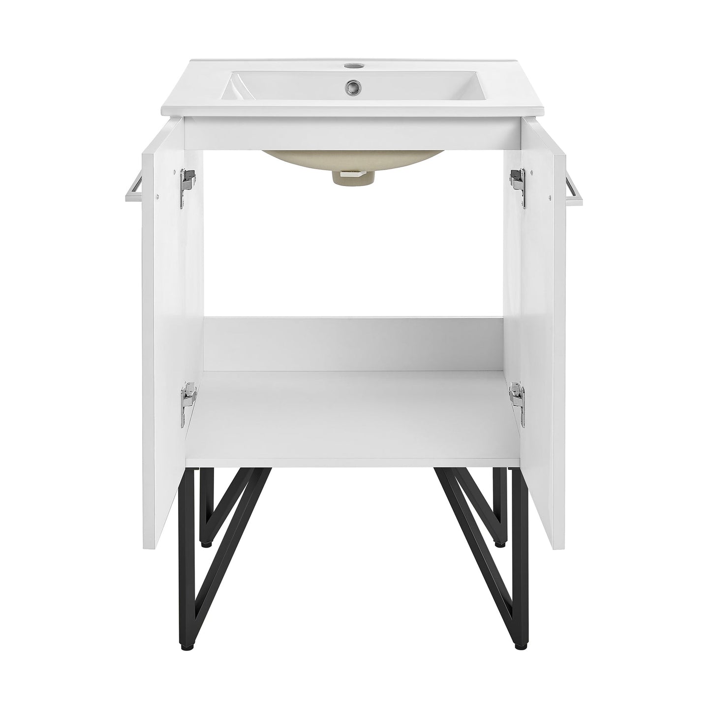 Swiss Madison Annecy 24" x 35" Freestanding White Bathroom Vanity With Ceramic Single Sink and Stainless Steel Metal Legs