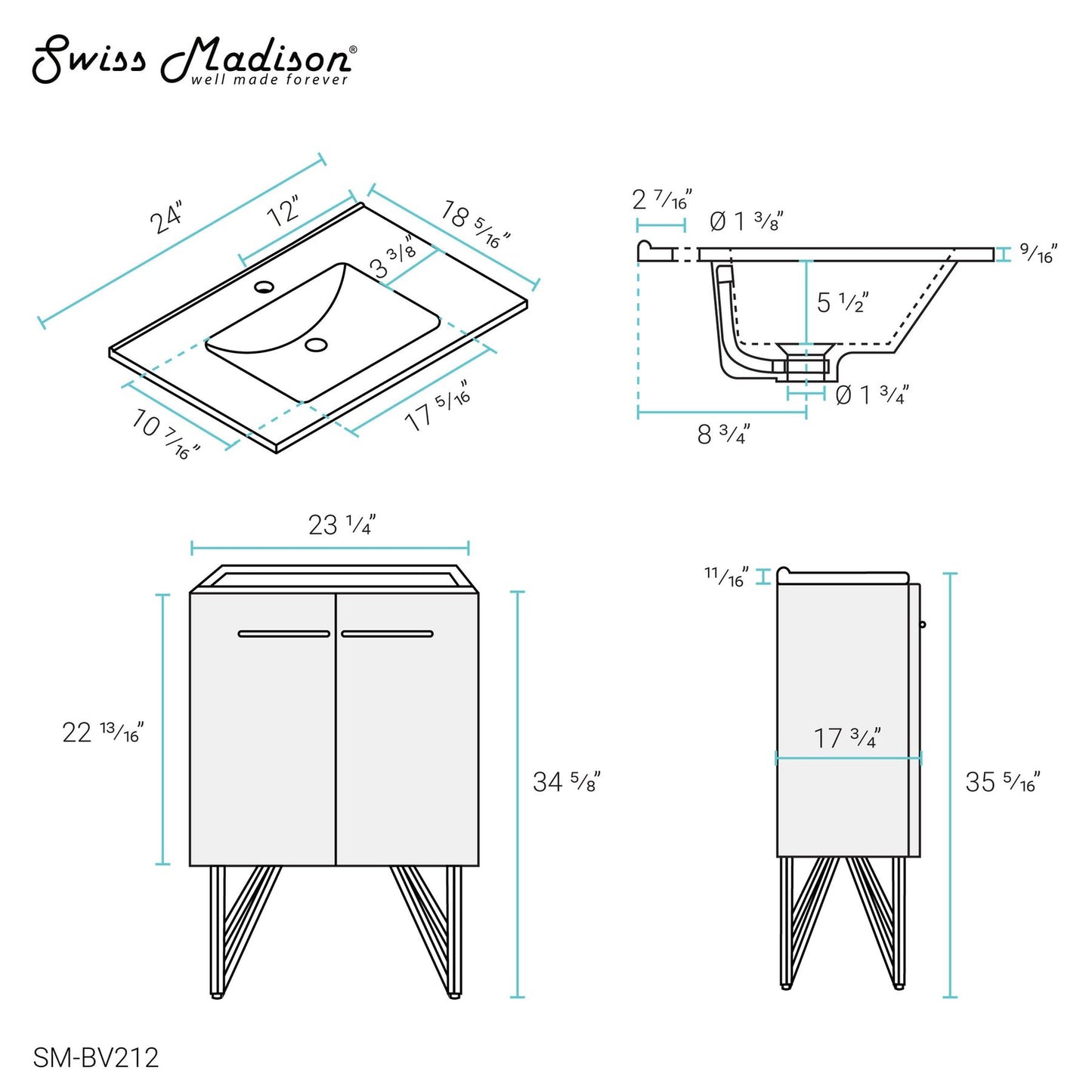 - Pairs Seamlessly with a Swiss Madison Faucet, sold separately