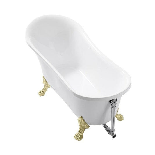 Swiss Madison Caché 63" x 29" White Right-Hand Drain Freestanding Bathtub With Adjustable Brushed Gold Clawfoot Feet, Overflow Kit and Pop-Up Drain