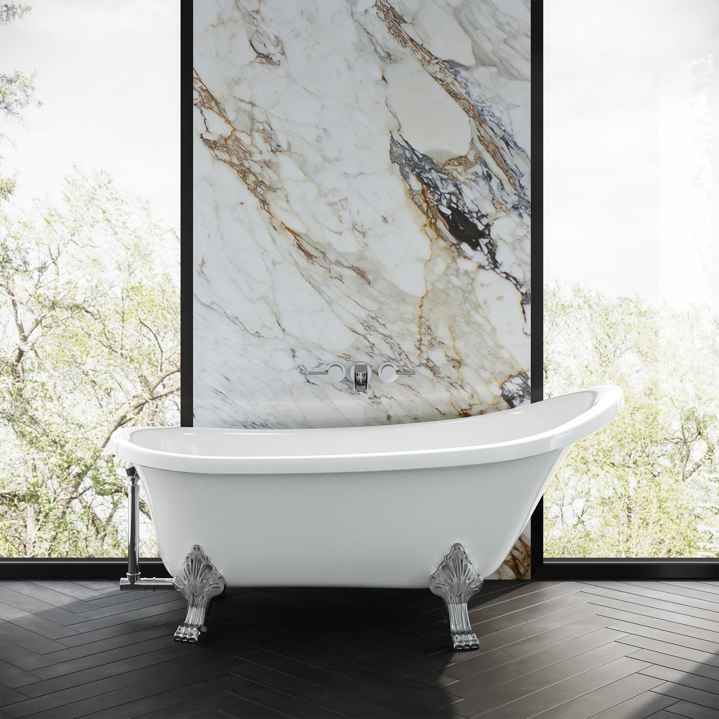 - Overflow Kit, Pop-up Drain and Chrome Height Adjustable Clawfoot Feet included