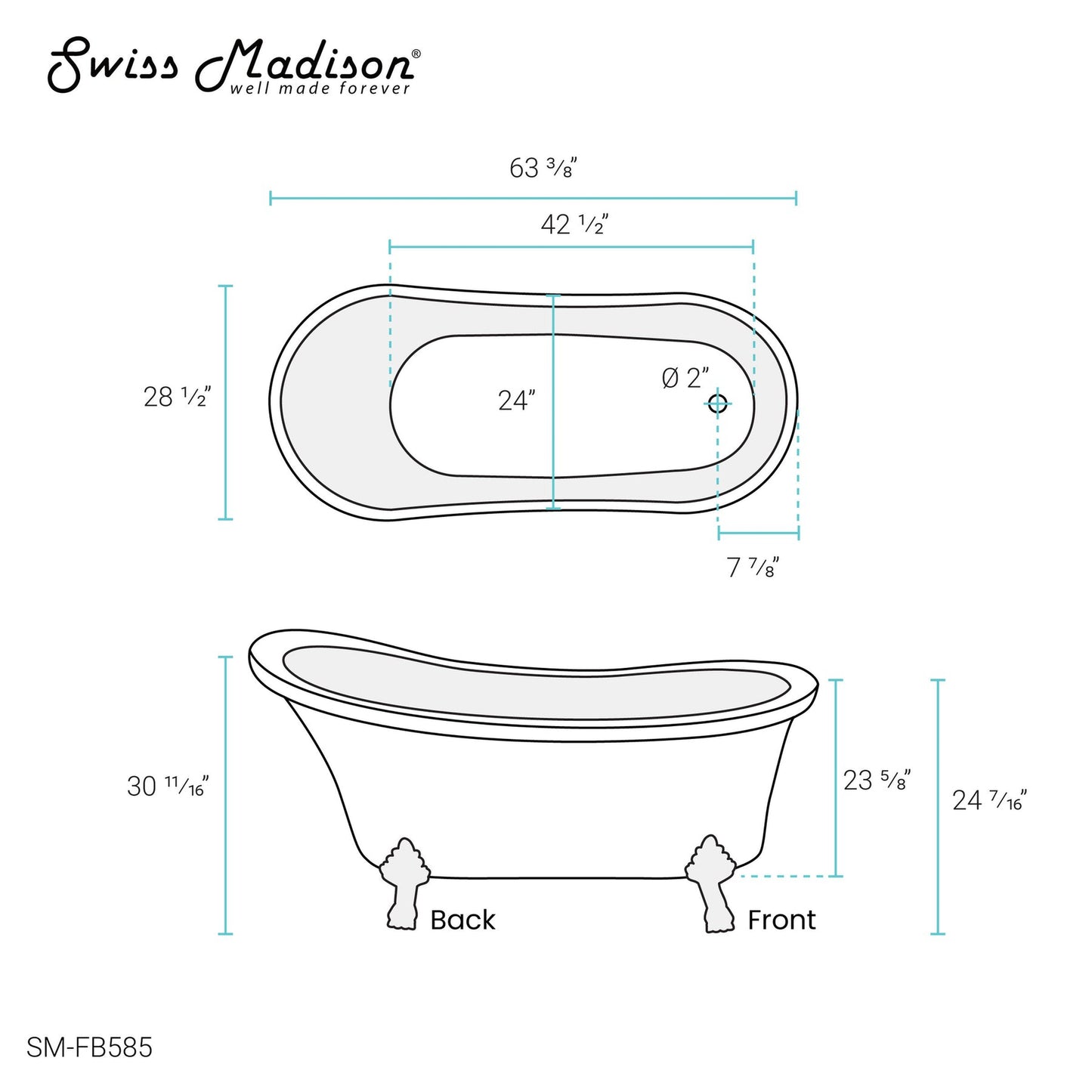 The Swiss Madison Clawfoot Tub has a classic design that will elevate any bathroom. It is constructed with heavy-duty acrylic and has a galvanized steel frame for durability. Designed for comfort, its perfect soaking depth and curved back allow you to relax and enjoy a full spa-like experience.
