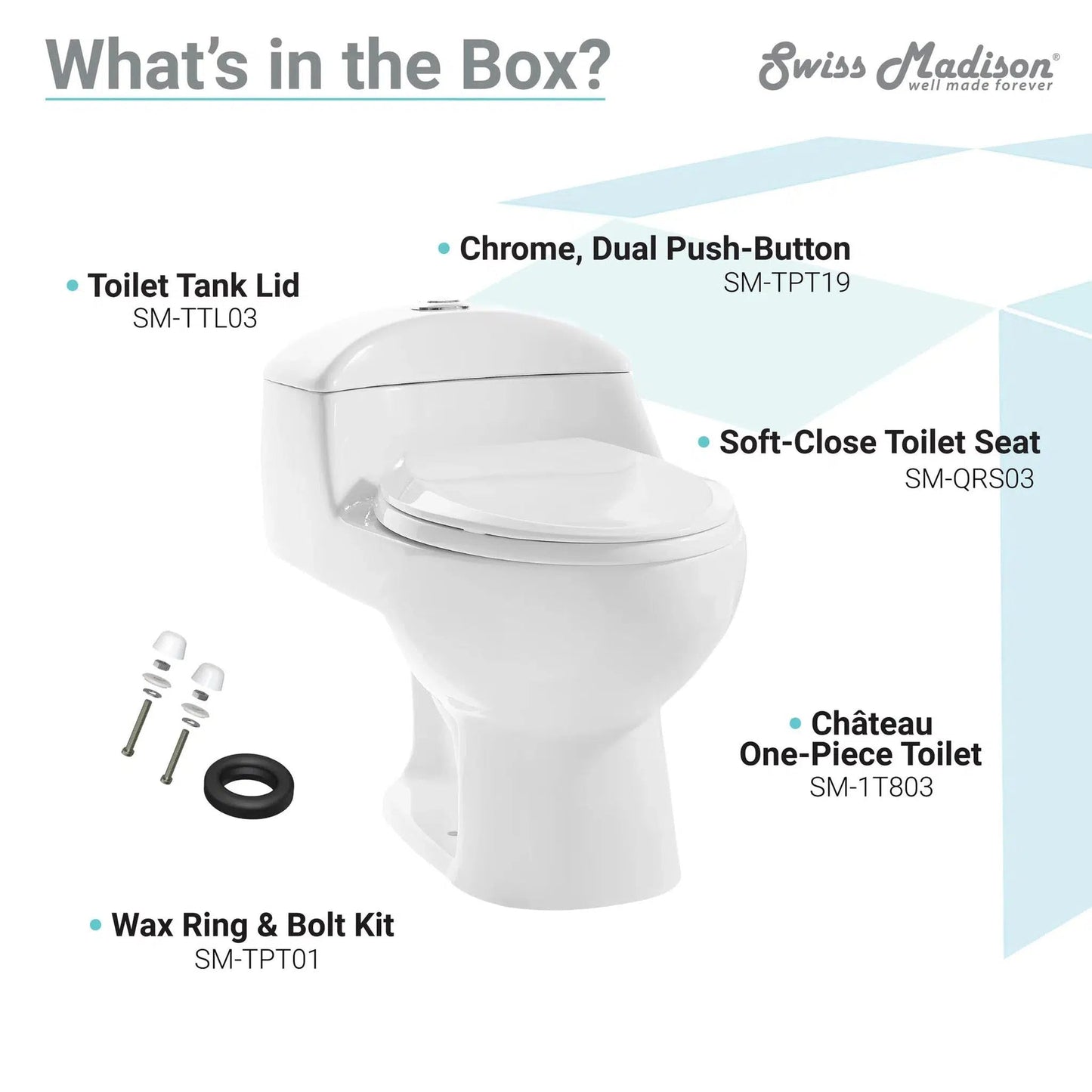 - Wax Ring & Toilet Bolts: SM-TPT01