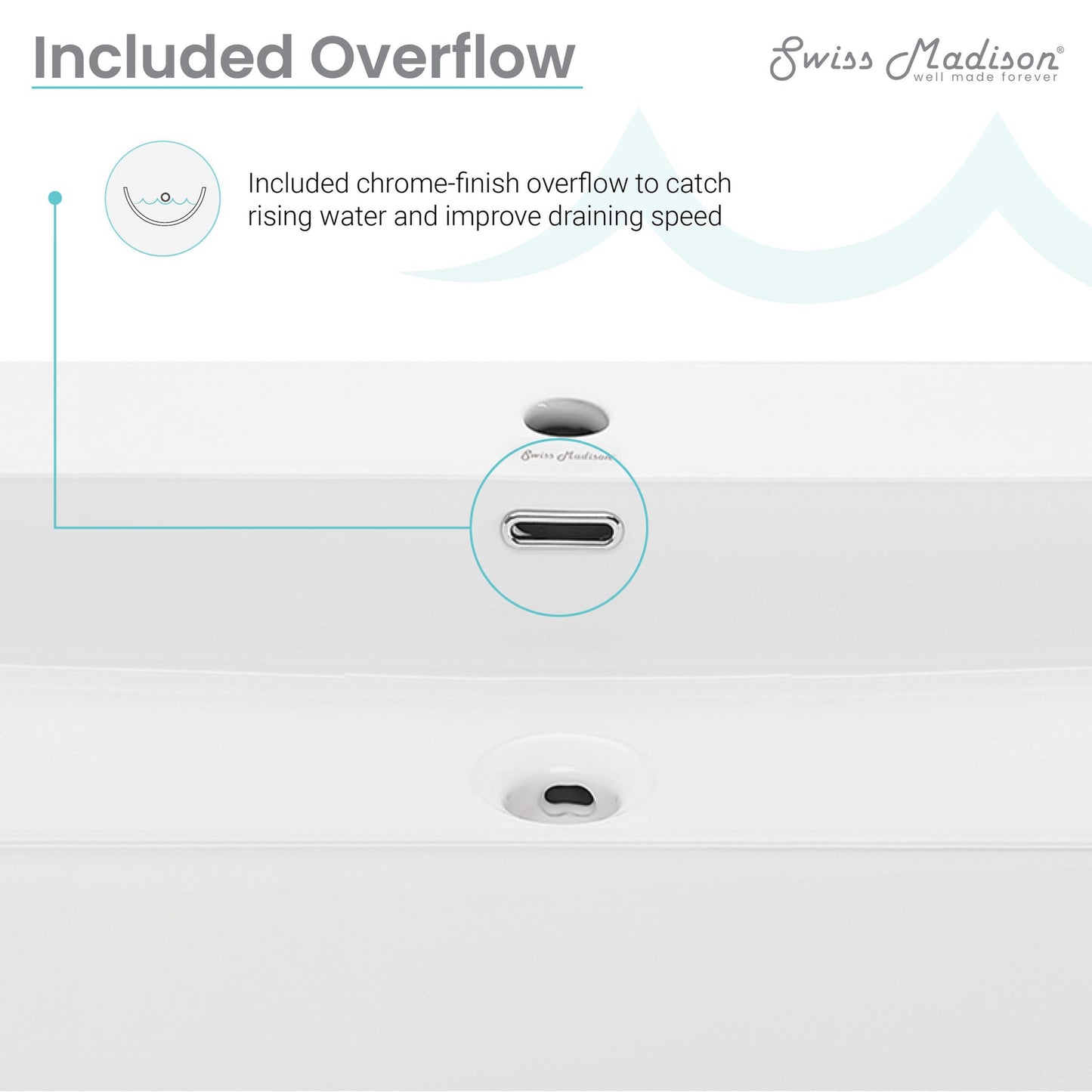 - Overflow drain included