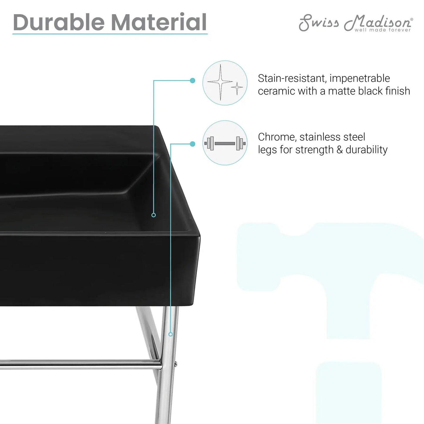 Swiss Madison Claire 30" x 35" Wall-Mounted Console Sink With Matte Black Basin and Chrome Legs