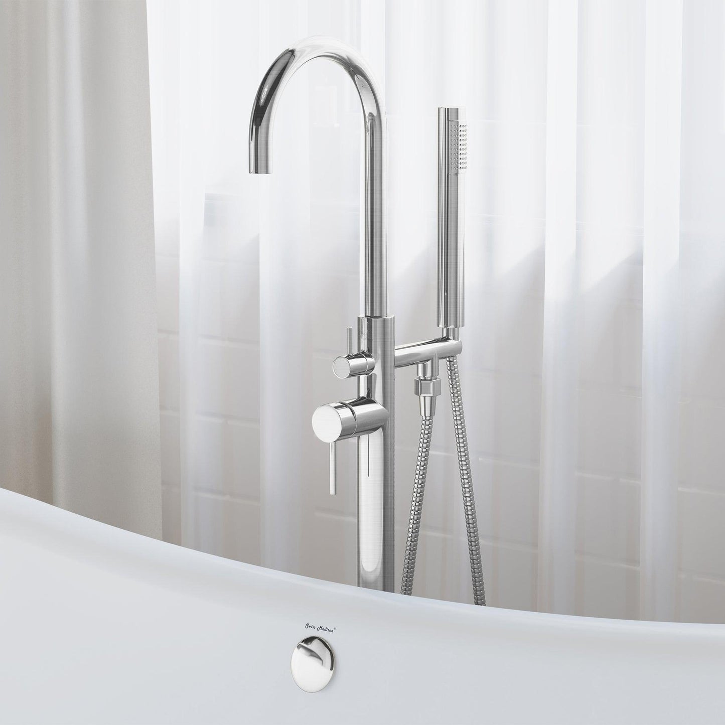 The Ivy Freestanding Bathtub Faucet is an innovative modern faucet that will enhance any bathtub. Manufactured with a brass body, this durable piece is built to last and easy to install. Its stainless steel tube and zinc handle exemplify luxury and flexibility all in one. Offered in a variety of finishes, Ivy freestanding faucet would be a perfect addition to any bathroom setting.