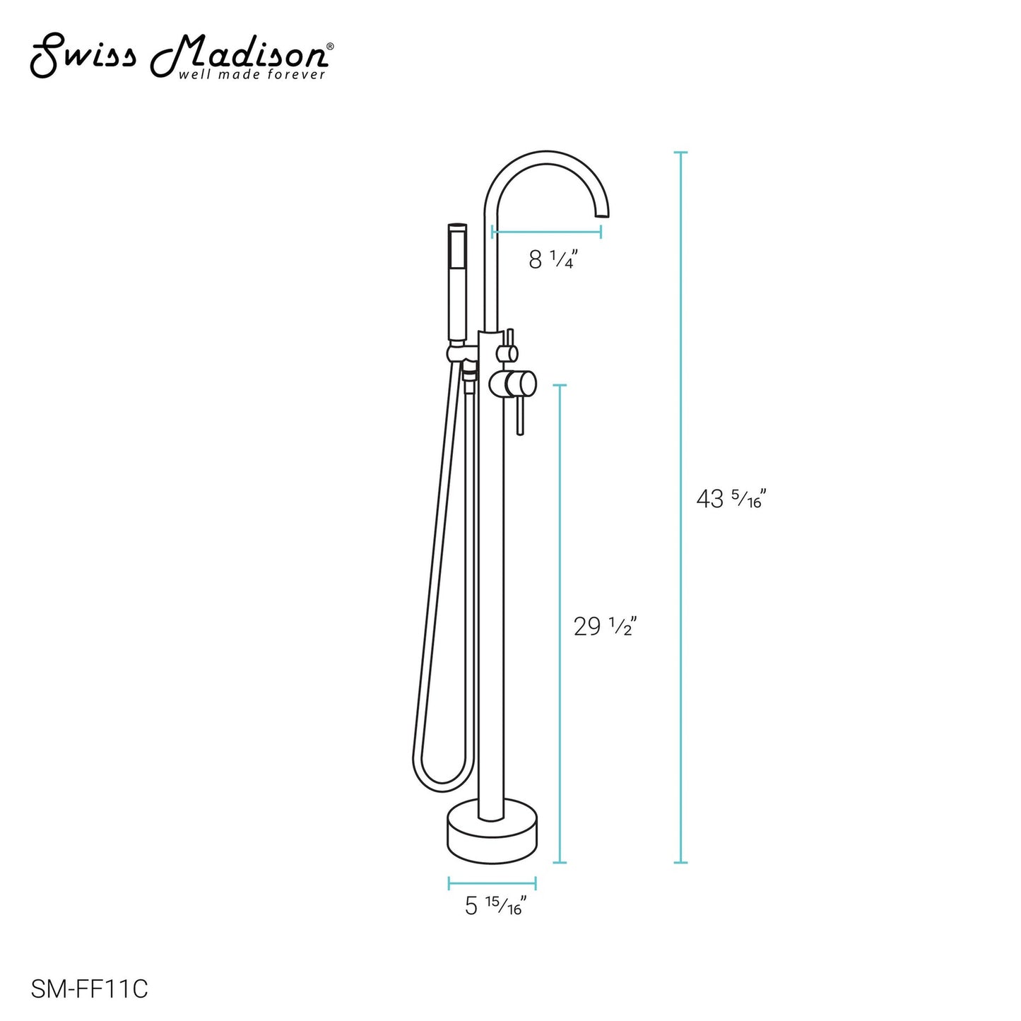 Swiss Madison Ivy 43" Chrome Single Hole Floor Mounted Bathtub Faucet With Hand Shower, Tub Spout and Handle