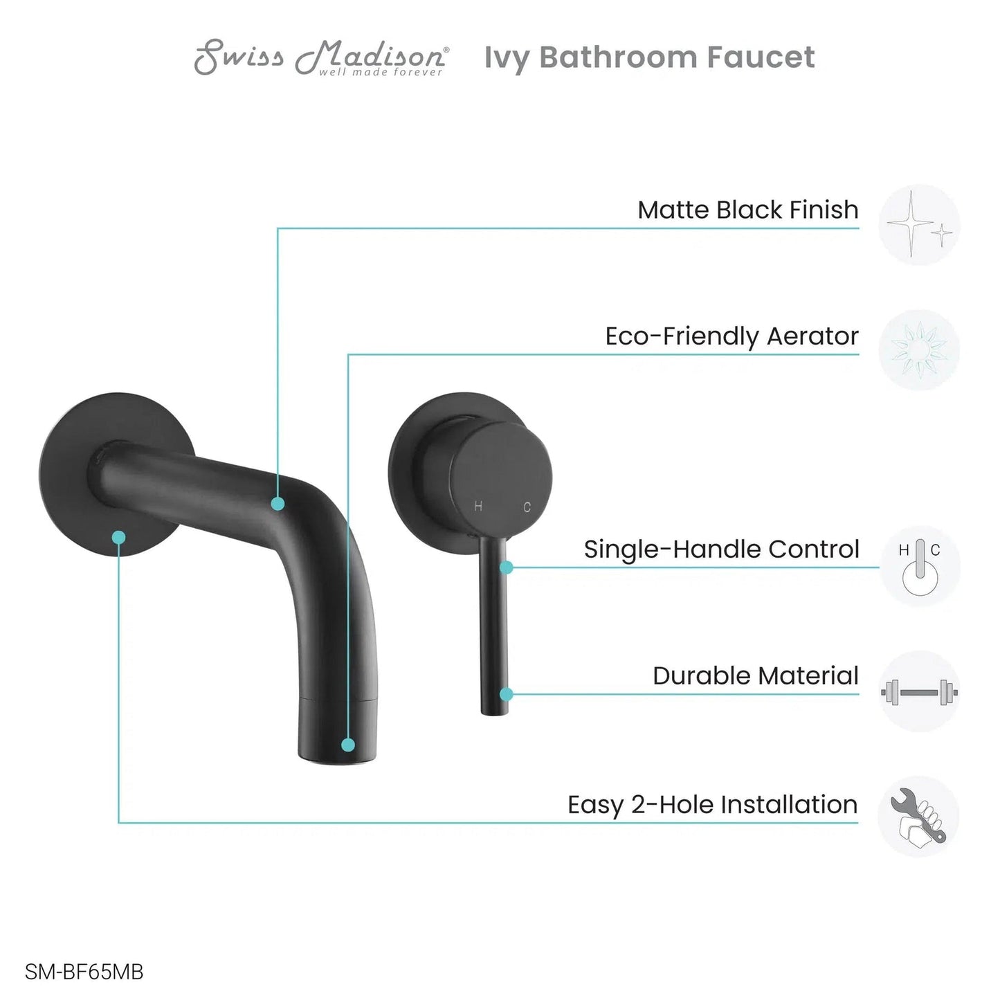- Two-hole, wall-mount installation