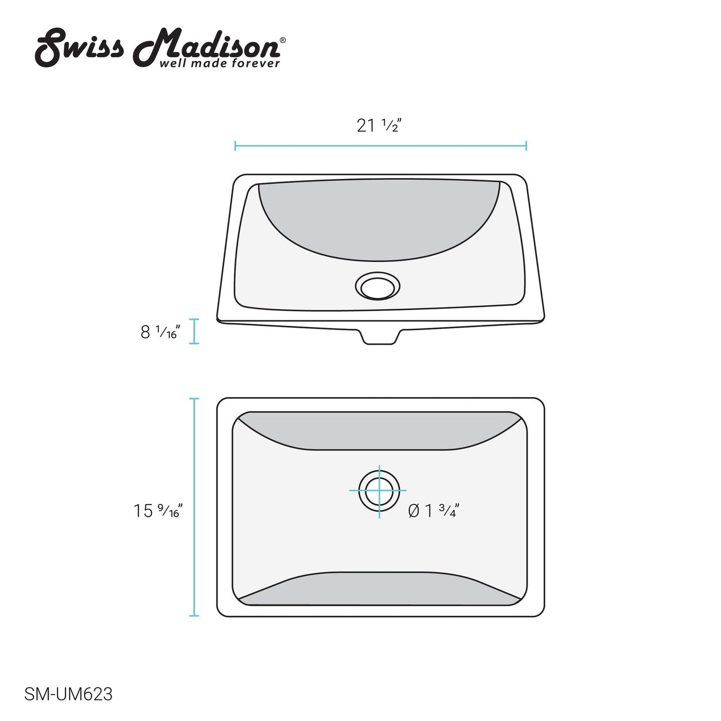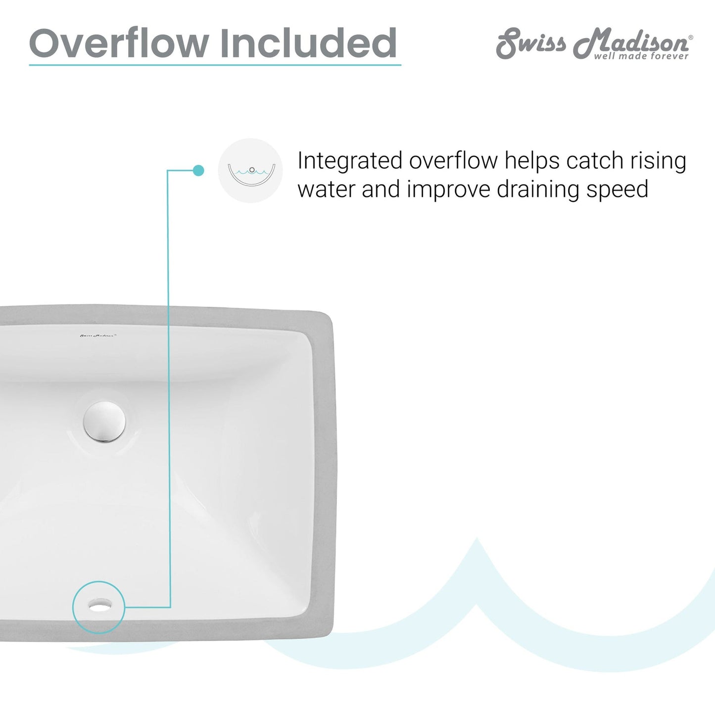 Swiss Madison Plaisir 22" x 16" White Rectangle Ceramic Bathroom Undermount Sink