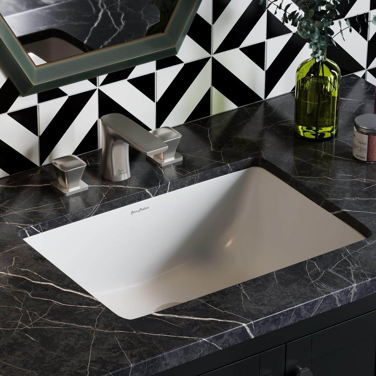 Sleek and contemporary, part of the Plaisir Collection, 21" Rectangular Undermount Bathroom Sink features a timeless design that suits both traditional and modern bathroom decors. The Plaisir sink will go along with any counter top you may choose. Designed from durable ceramic the Plaisir undermount sink is a lasting selection for any setting.