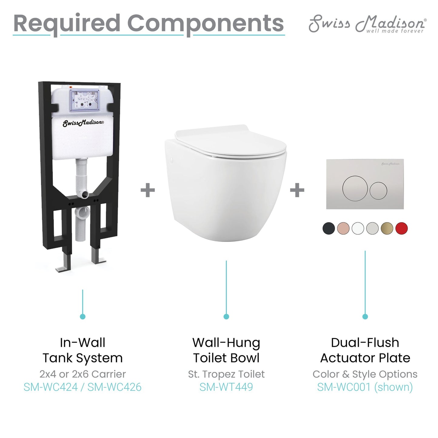 The St. Tropez Wall-Hung Elongated Toilet Bowl saves precious space for residential and commercial bathrooms. The Carrier Tank (not included) is completely concealed, helping to increase space while still offering simple and easy access to the plumbing system through the actuator plate (not included).