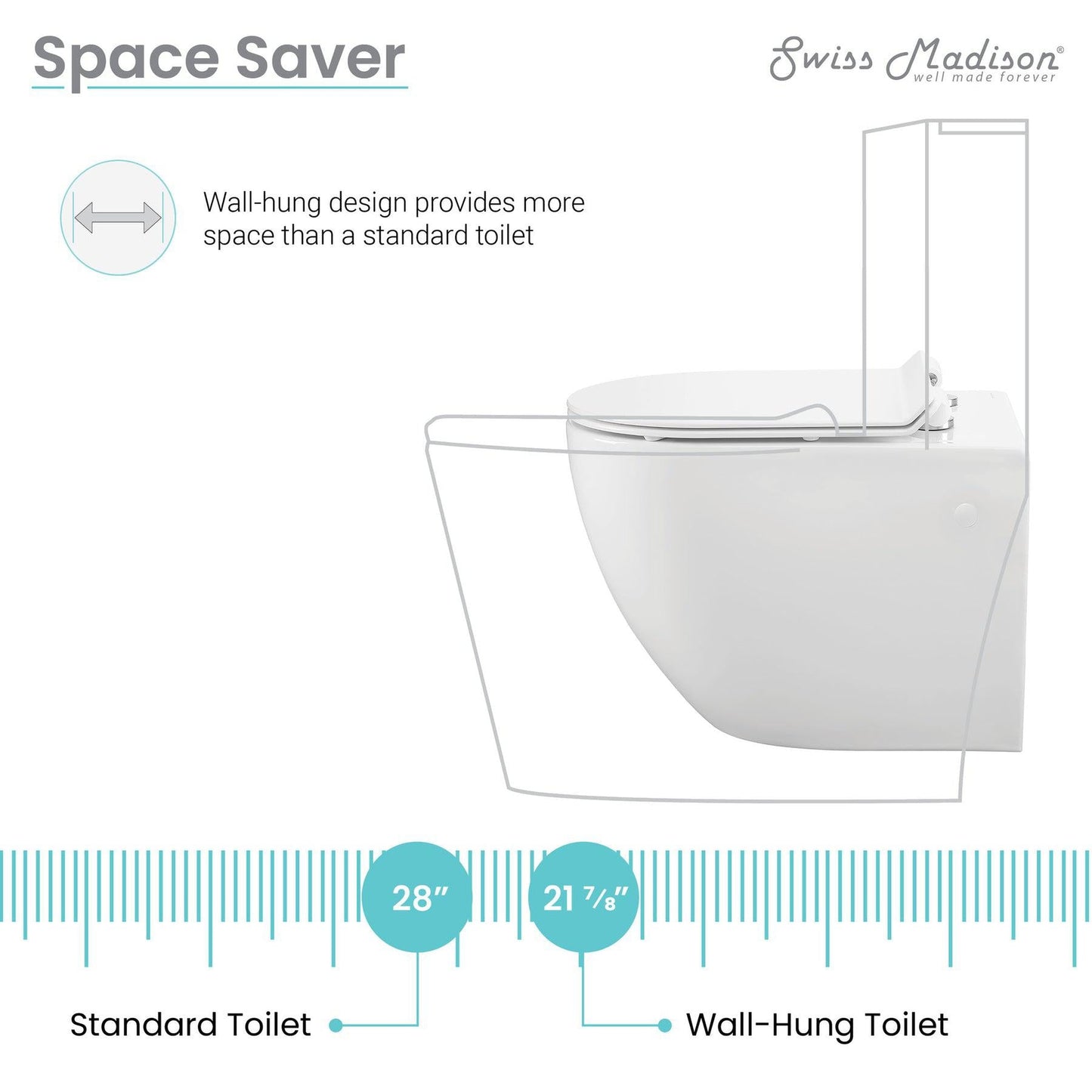Swiss Madison St. Tropez 14" x 14" Glossy White Elongated Wall-Hung Toilet Bowl