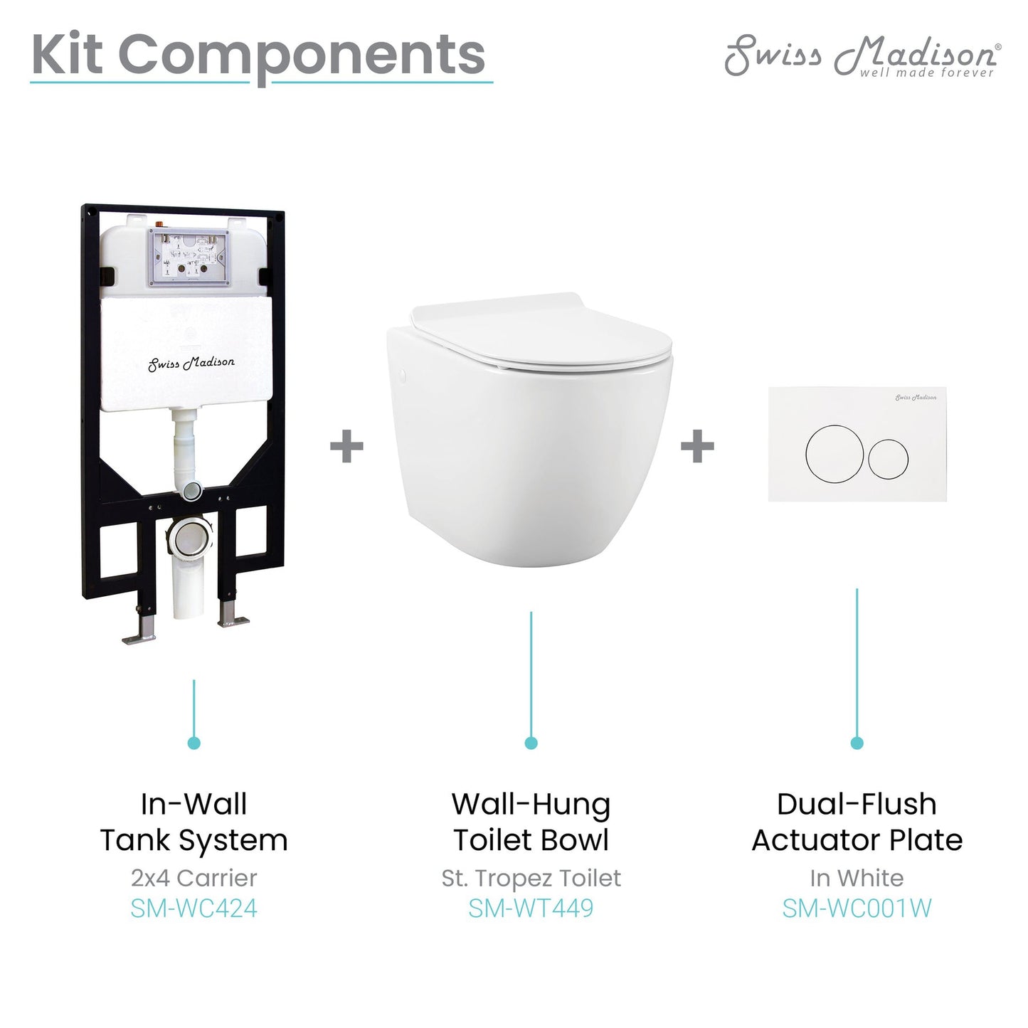 Swiss Madison St. Tropez 14" x 14" Glossy White Elongated Wall-Hung Toilet Bundle With In-Wall Carrier Tank and 0.8/1.6 GPF Dual-Flush Large Wall Actuator Plate
