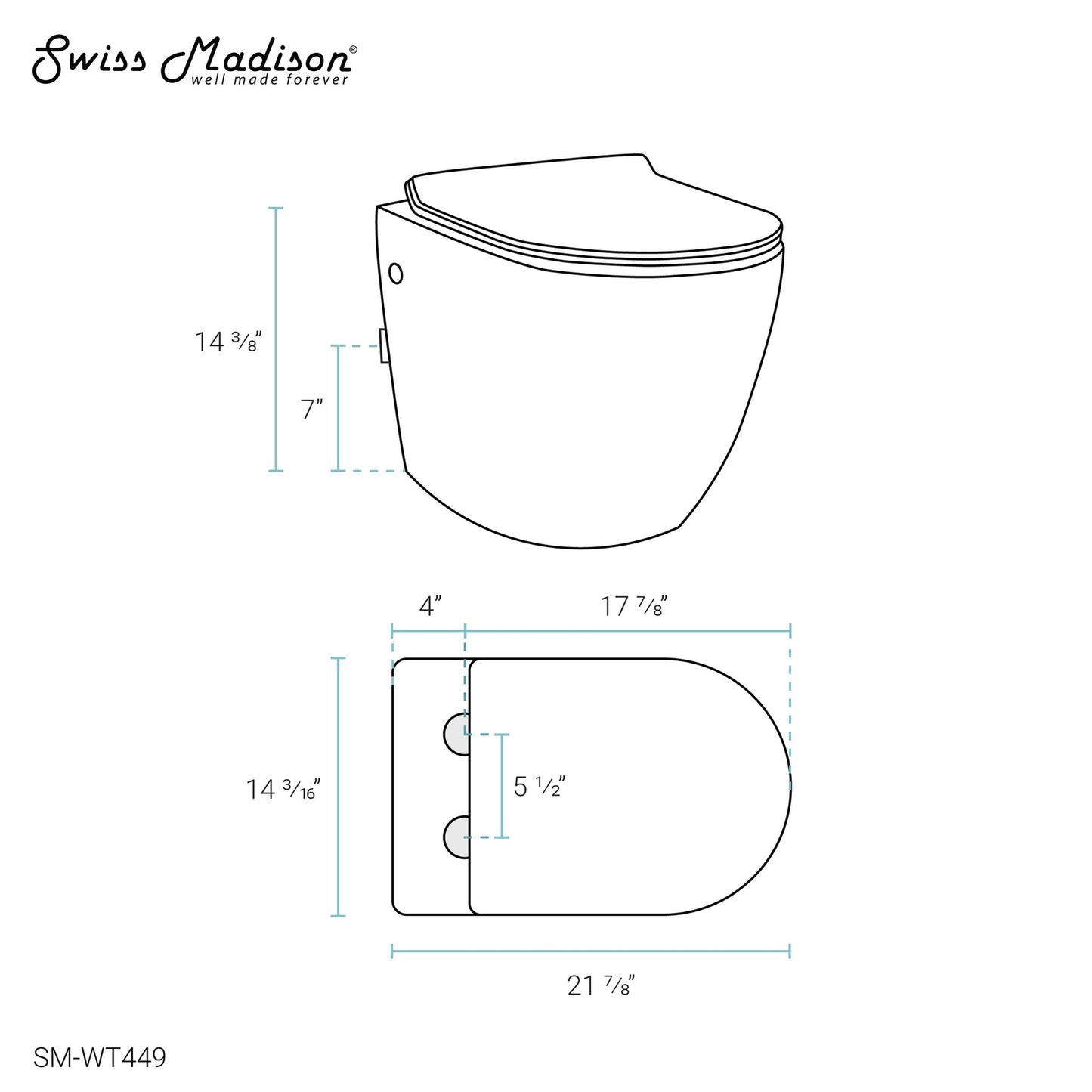 | Toilet Bowl Dimension | L: 21.88” x W: 14.19” x H: 14.38” |