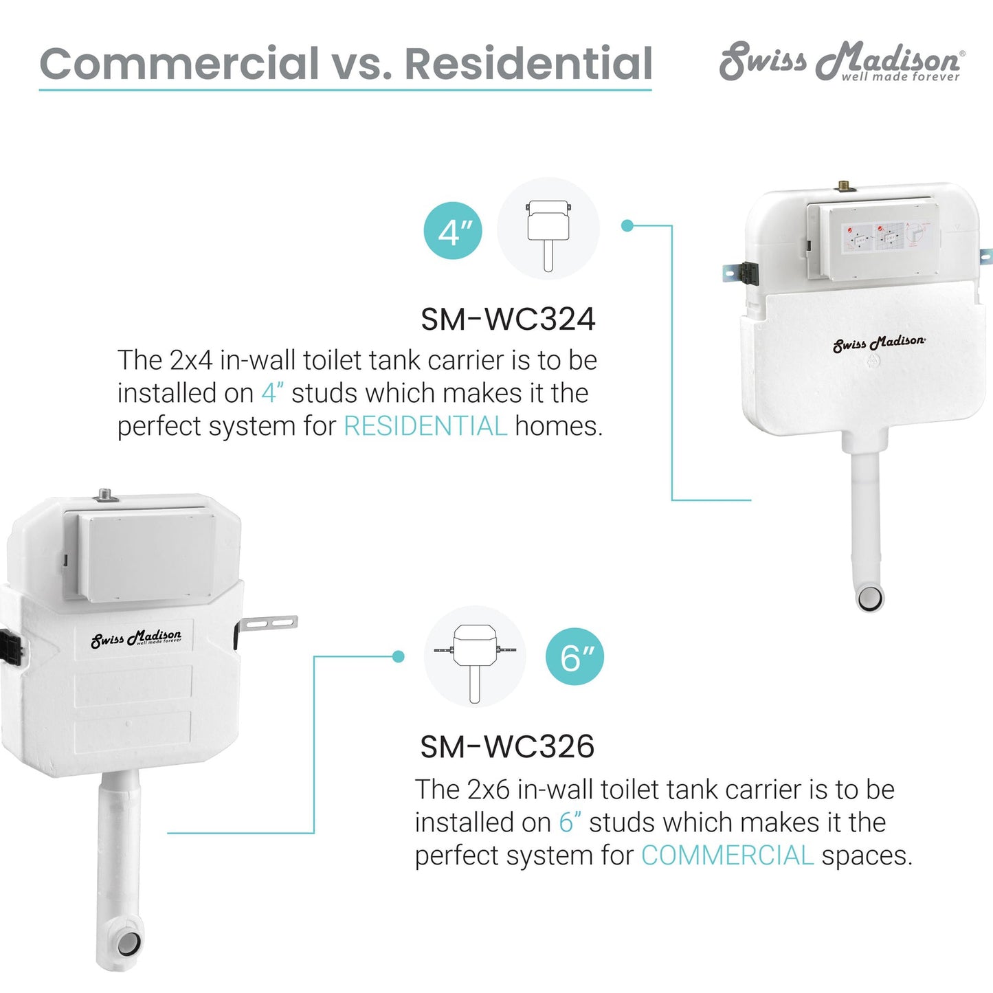 - In-Wall Tank Carrier System: SM-WC324, SM-WC326