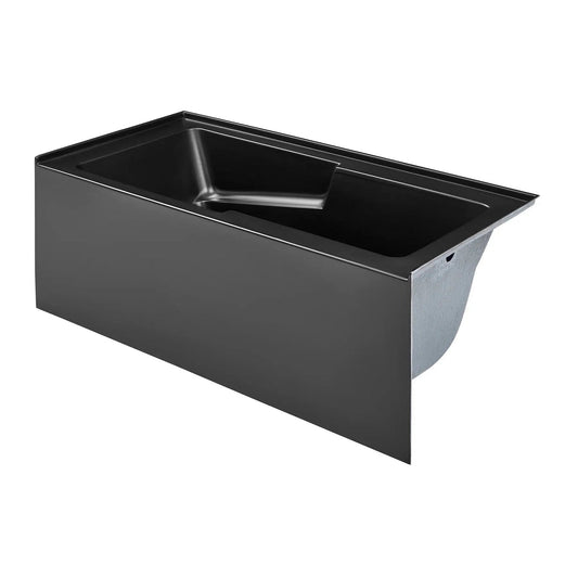Swiss Madison Voltaire 60" x 30" Matte Black Right-Hand Drain Alcove Bathtub With Integrated Armrest and Built-In Flange & Apron Front