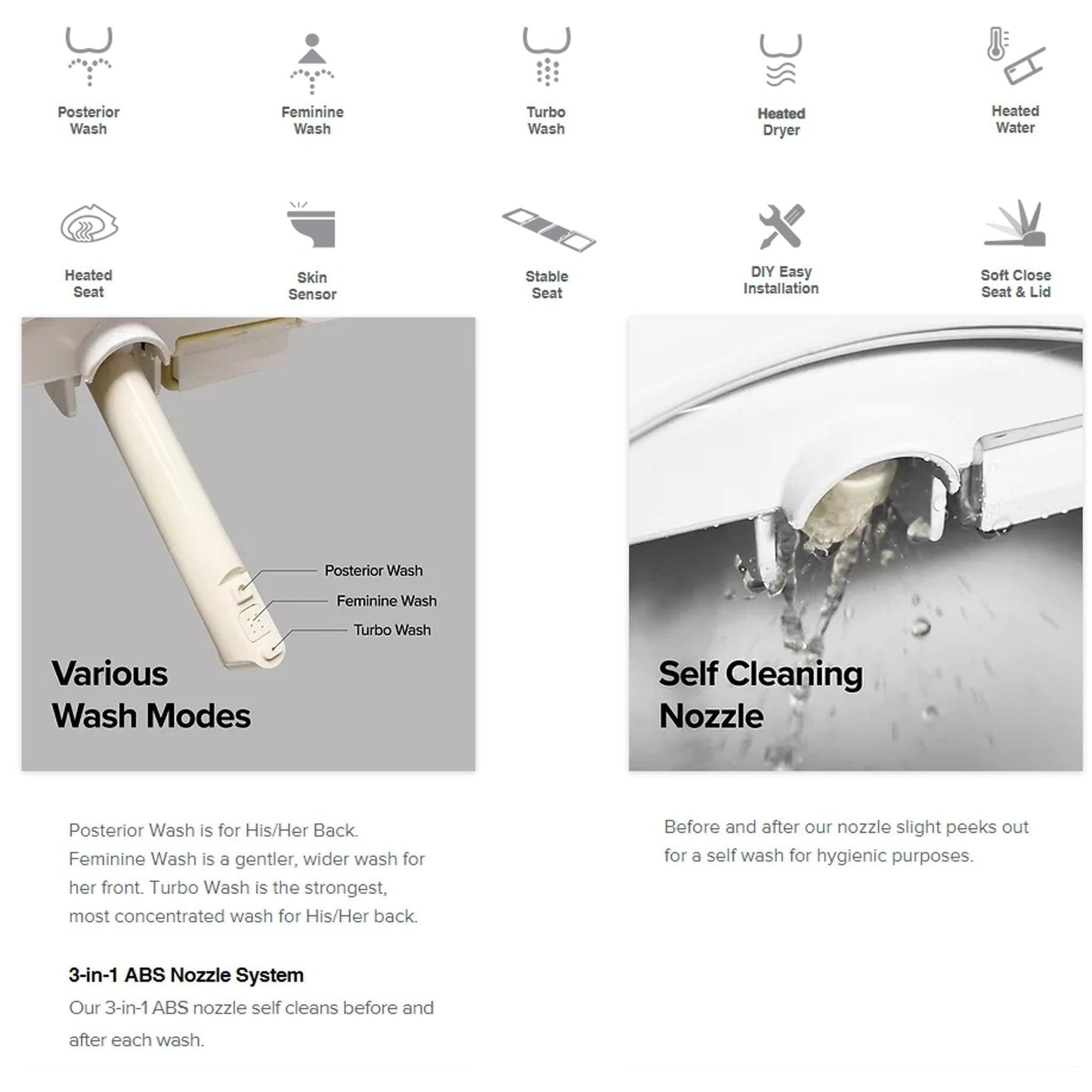 - Soft Close: The bidet toilet seat covered by itself is already a soft close seat that closes quietly and gently.