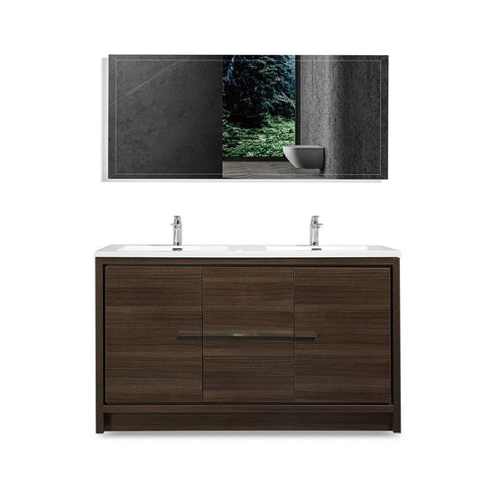 TONA Allier 60" White & Gray Oak Freestanding Bathroom Vanity with Faux Marble Integrated Top & Double Sink