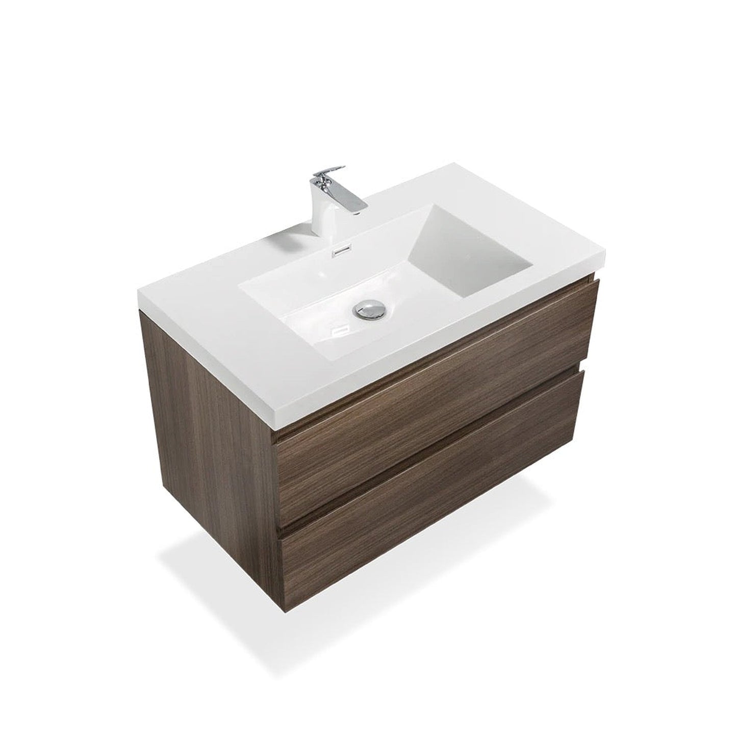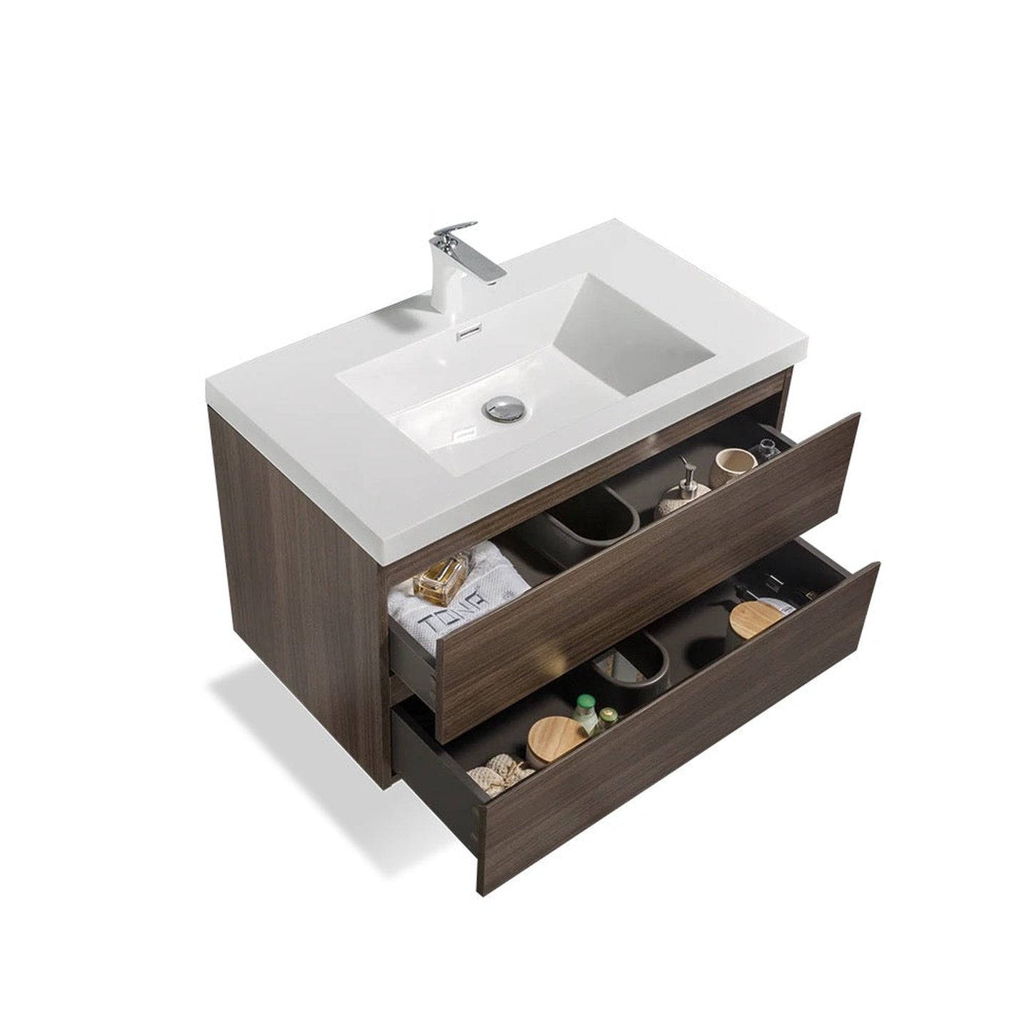 TONA Angela 36" White & Gray Oak Wall-Mounted Bathroom Vanity With Faux Marble Integrated Top & Single Sink