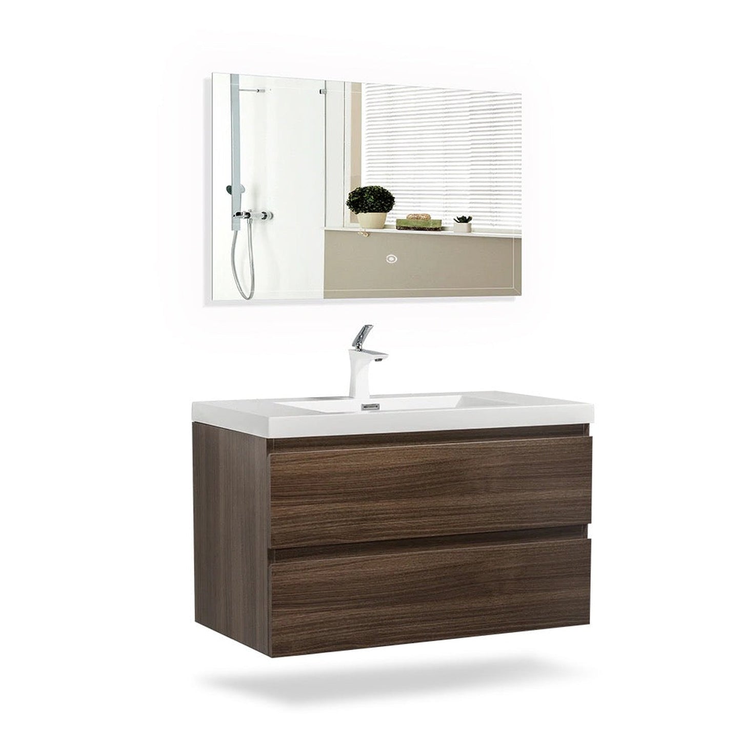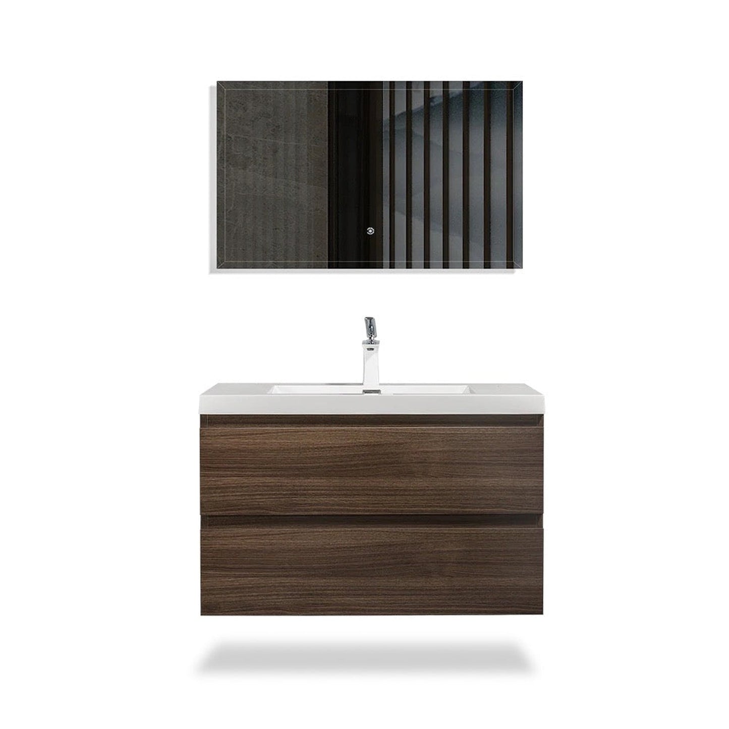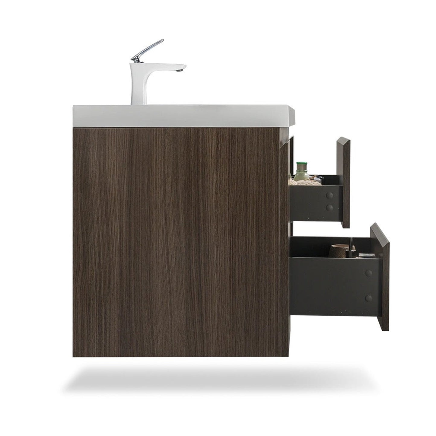 TONA Angela modern wall-mounted bathroom vanity has an integrated sink. With the patented design of drainage, the cabinet has plenty of storage space for all of your washing items. You will also discover a lot of amazing details in the design.