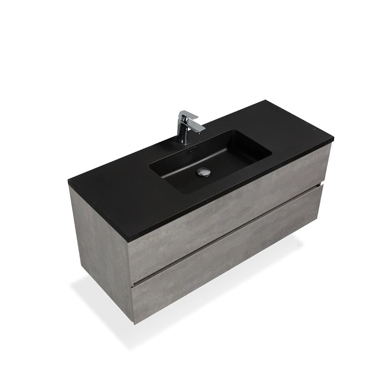 TONA Edi 60" Cement Gray & Black Wall-Mounted Bathroom Vanity With Black Quartz Integrated Top & Sink