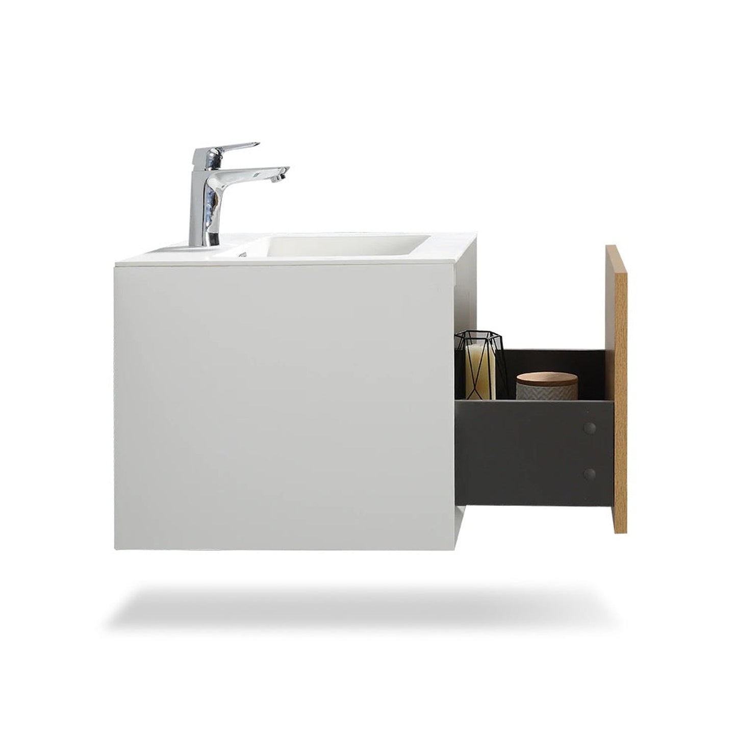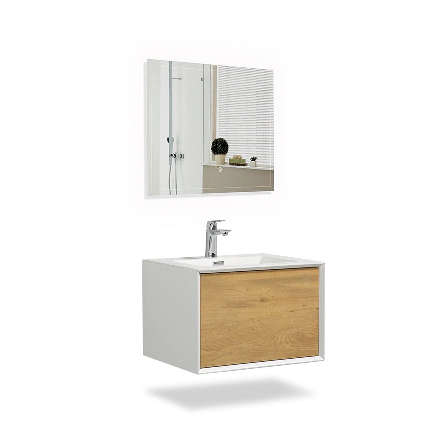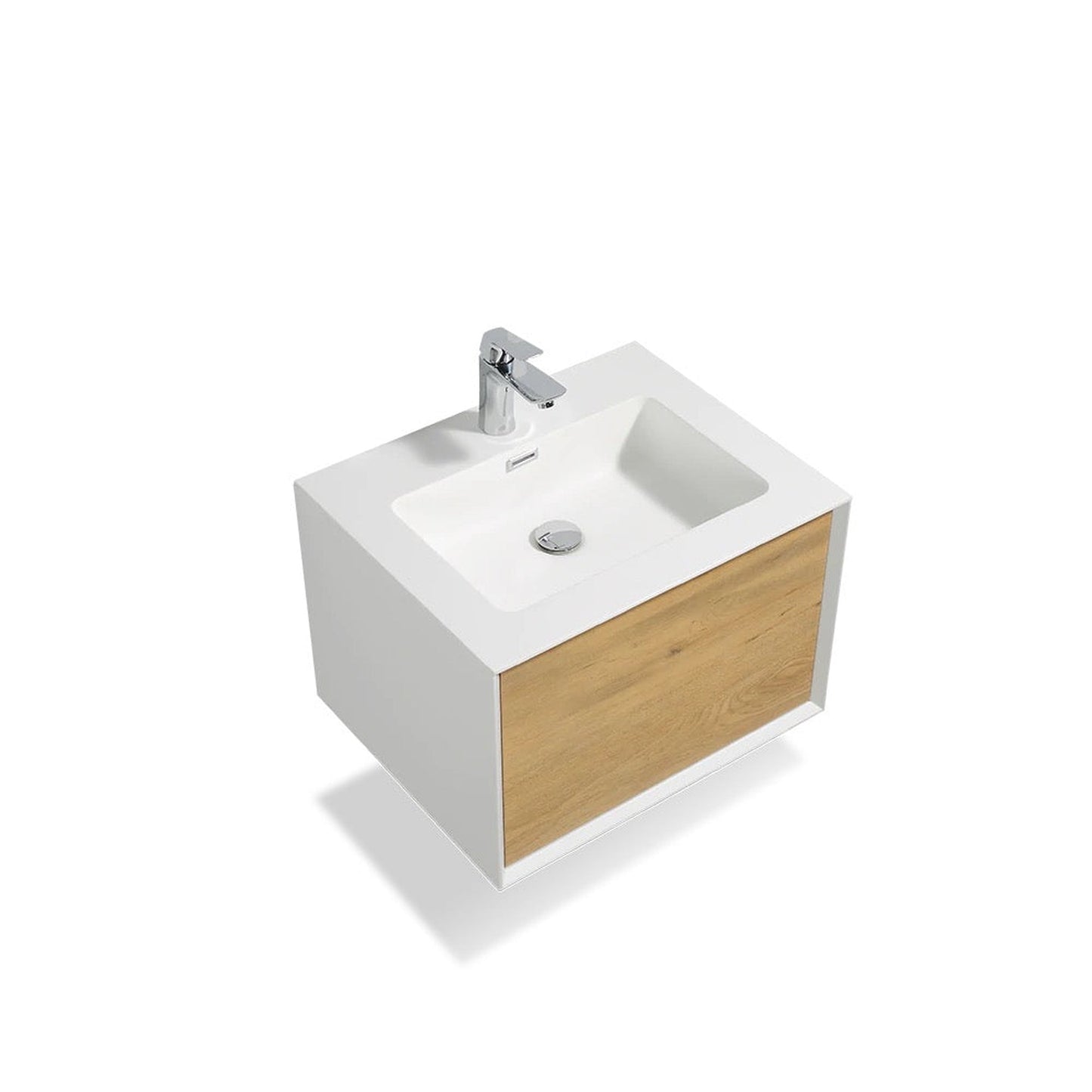 TONA Furla 24" White Oak Grain & Matte White Wall-Mounted Bathroom Vanity With Faux Marble Single Integrated Top & Sink