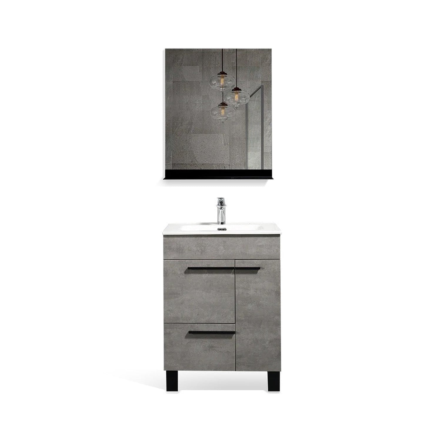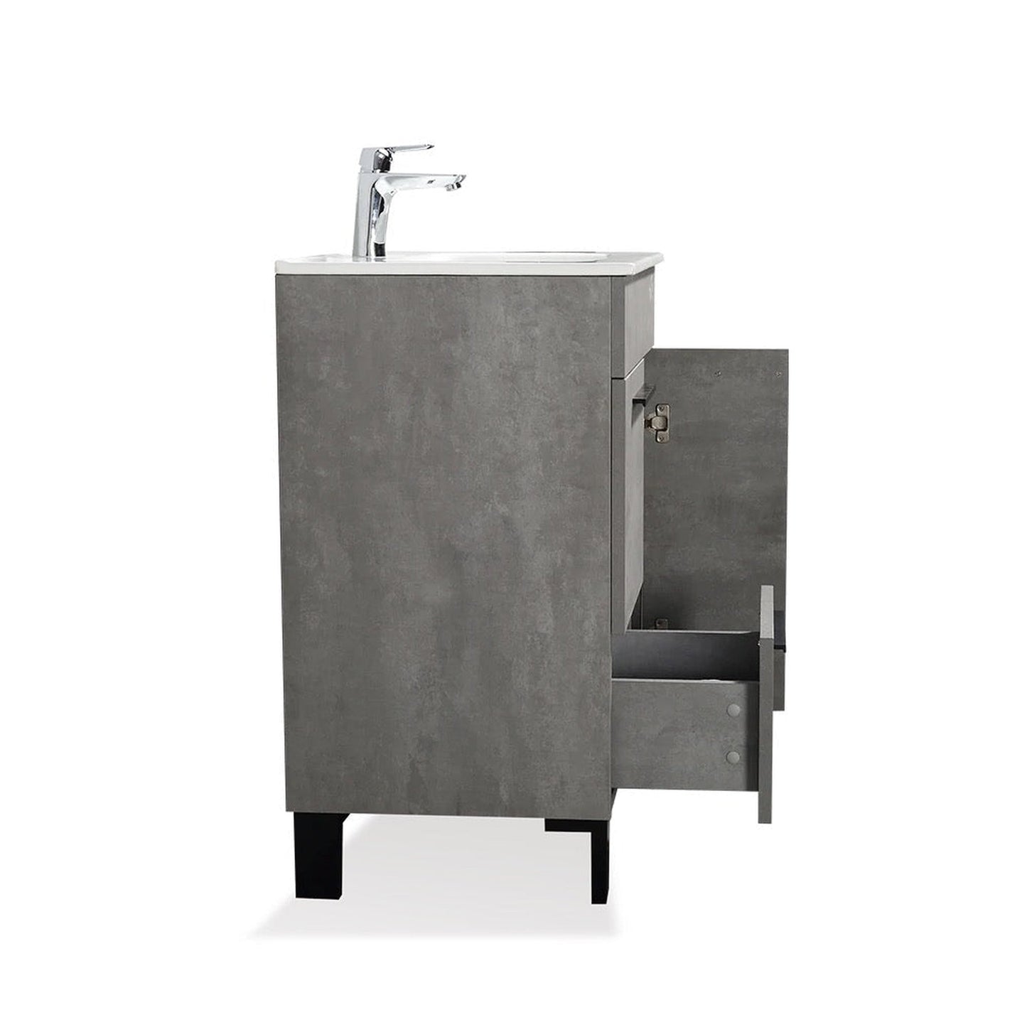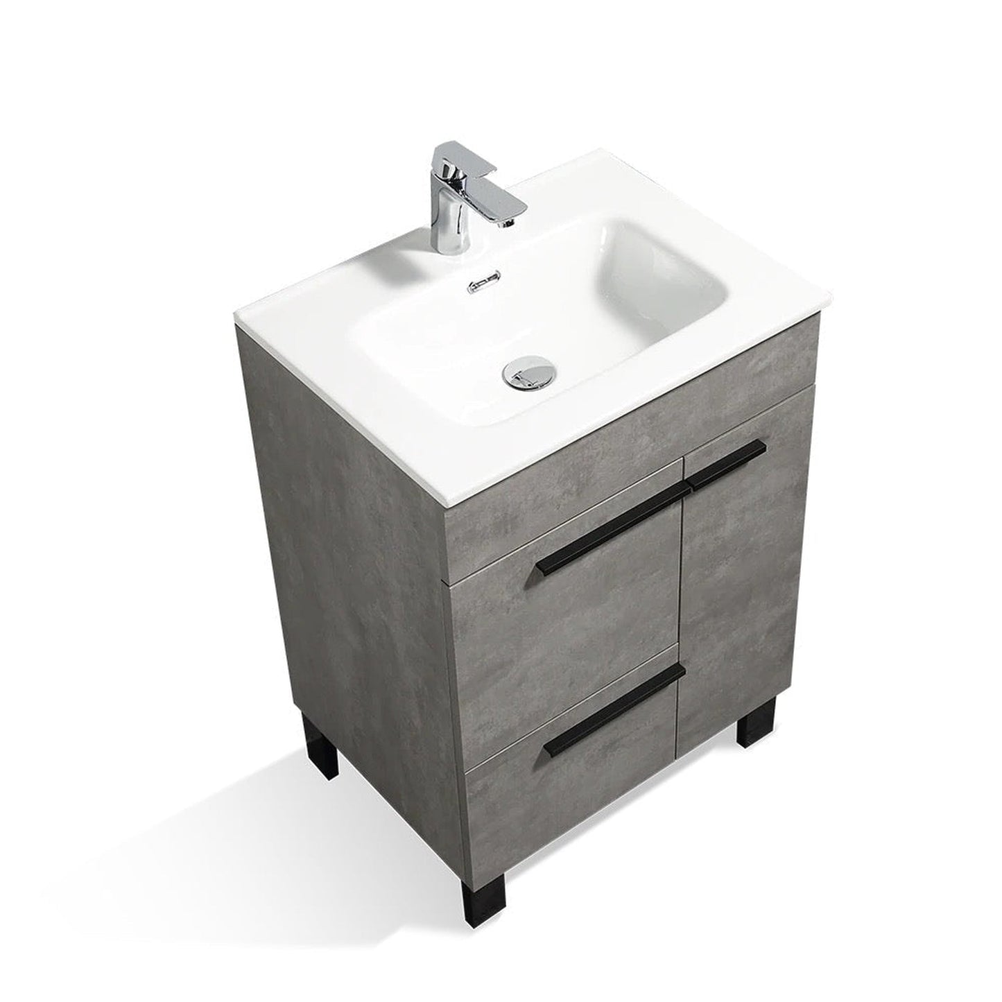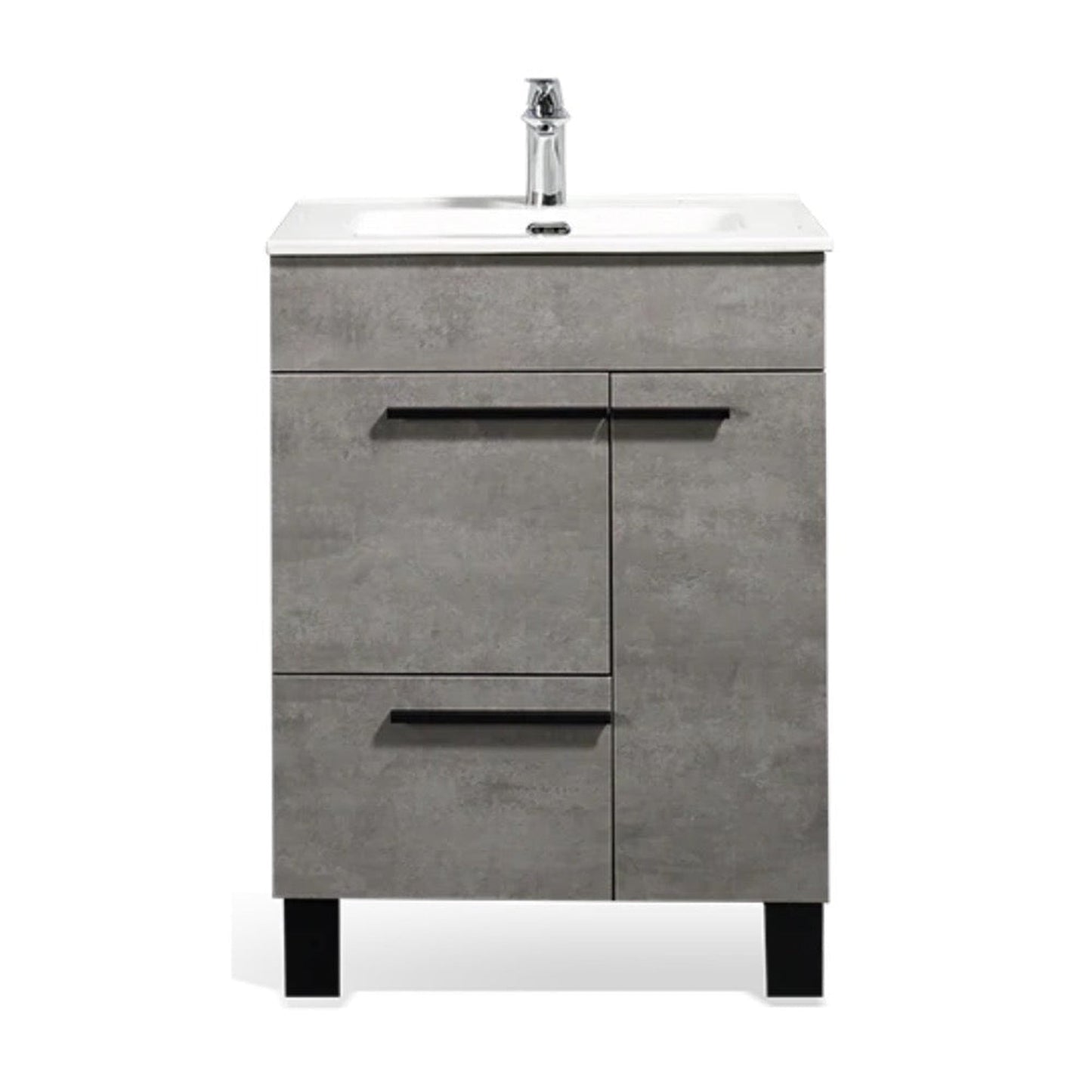 TONA Gill free standing bathroom vanity is one of the most elegant modern Bathroom Vanities with the cement grey color. It comes with a durable pure white ceramic integrated sink and features two doors and one full function drawers to provide you big and diversified storage space.