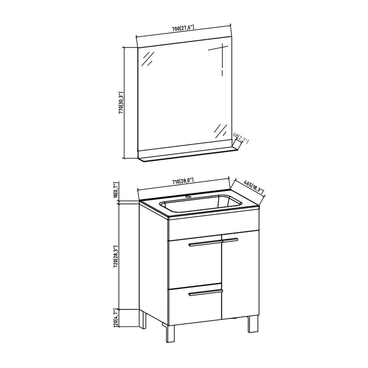 Modern Italian Design Bathroom Vanity Set with Sink - The 24-inch GILL bathroom vanity comes with Matte gray cabinet and glossy white counter sink (faucet and mirror are sold separately) which will be perfect for your modern bathroom. Bathroom vanity cabinet dimensions are 23.8"L x 17.9"W x 28.3”H.